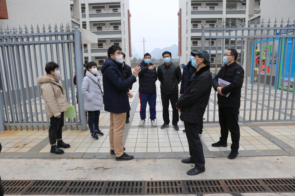 1月27日上午,桂林市新型冠状病毒感染的肺炎疫情防控工作领导小组指挥部学校疫情防控工作组常务副组长、桂林市教育局党组成员刘小松一行4人到best365官网检查指导疫情防控工作。学校副校长罗国湘,党办/校办、宣传部、学工部、保卫处、后勤管理处等部门负责人陪同检查。