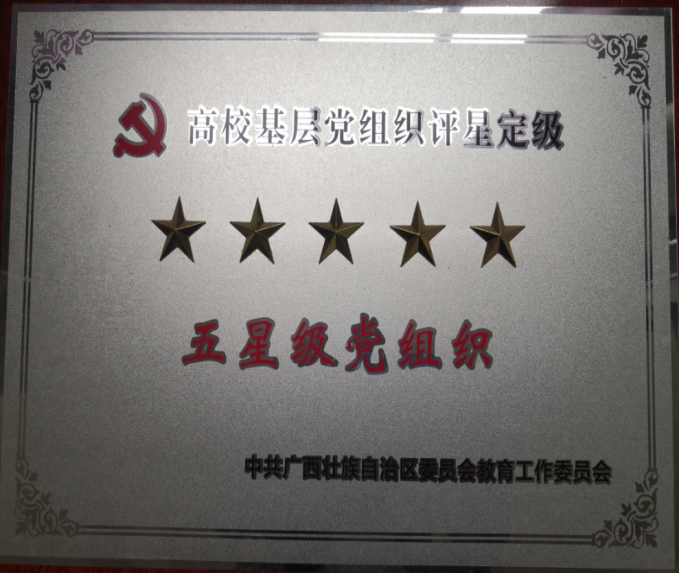 学院学生党支部是学校优秀党支部,在2019年又获得广西区“五星级”党支部,学院教工支部于2020年获得广西区“五星级”党支部。