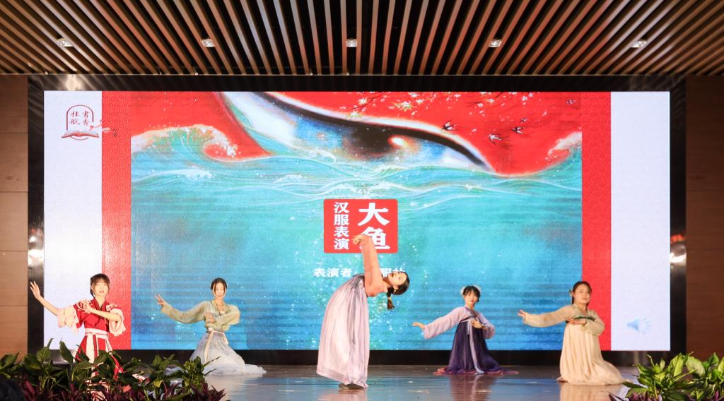 启动仪式围绕“阅百年历程 传阅读力量”这一主题开展了多项活动。汉服社表演舞蹈《大鱼》留学生代表进行了《长歌行》古诗朗诵优秀读者师生代表分享坚持阅读的体验,倡议广大青年学子将阅读养成一种习惯阅读推广志愿者围绕 “阅百年历程 传阅读力量”这一主题进行了声情并茂的红色家书朗读