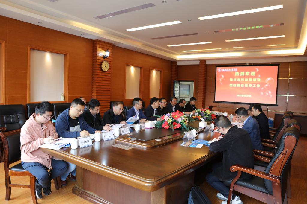 4月27日下午,桂林市科学技术局党组书记、局长张晓阳带队来best365官网考察调研。学校党委书记李幼平、副校长孙山林在飞天楼6楼会客室接待了调研组。