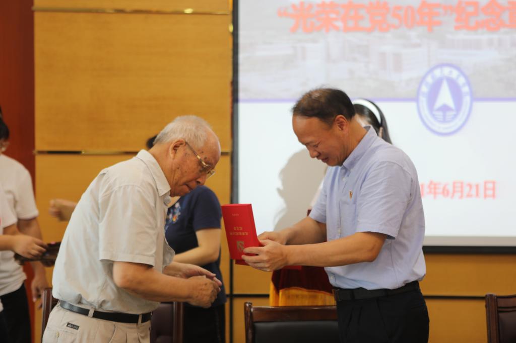为老党员颁发纪念章是庆祝中国共产党成立100周年活动的重要组成部分,在中国共产党的百年历史上,颁发“光荣在党50年”纪念章尚属首次,体现了以习近平同志为核心的党中央对老党员的关心关怀。会上,李幼平为16名老党员颁发了“光荣在党50年”纪念章,并代表学校党委向获得纪念章的老党员表示热烈的祝贺。