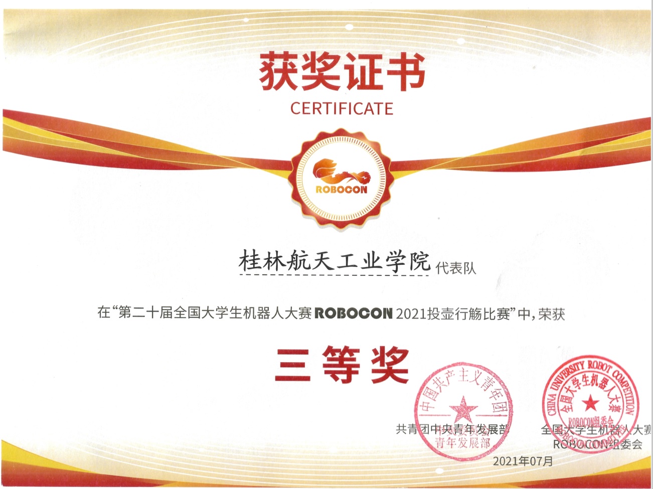 7月31日,第二十届全国大学生机器人大赛ROBOCON2021投壶行觞比赛全国总决赛落下帷幕。此次大赛由共青团中央主办,由华中科技大学、哈尔滨工业大学、武汉大学、北京航空航天大学等79所知名高校派出的106支参赛队伍共襄盛举,2000余名参赛选手同台竞技,上演了一场场激烈的机器人大战。由电子信息与自动化学院的学子组成的best365手机版官方网站代表队(领队教师:嵇建波;指导教师:李永涛;组员:陈富文、刘耀天、傅钟成、廖梓翔、陈思远、张立等14名学生)经过多场激烈的角逐,最终斩获投壶行觞比赛的全国三等奖。