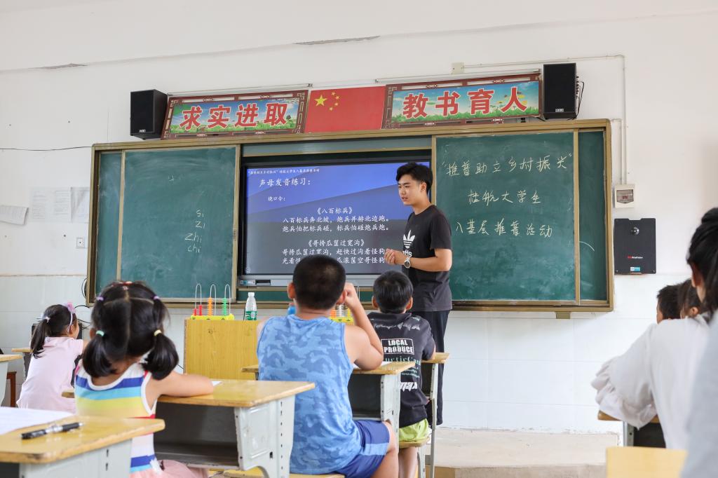 为深入学习贯彻习近平总书记关于教育的重要论述精神,全面落实全国语言文字会议精神,加大民族地区、农村地区国家通用语言文字推广力度,服务乡村振兴战略实施的需要。8月29日,best365官网派驻桂林市灌阳县文市镇集全村的第一书记联合校大学生传媒中心的学生为集全村的青壮年开展普通话培训。