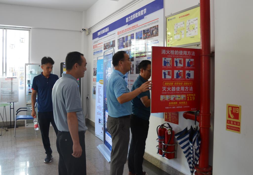 为确保秋季开学学校的安全稳定,9月7日上午,由学校党委副书记刘迎春带队,党办/校办、学工处、教务处、国资处、后勤管理处、保卫处等相关职能部门负责人组成的检查组,对南、北校区进行开学安全检查。