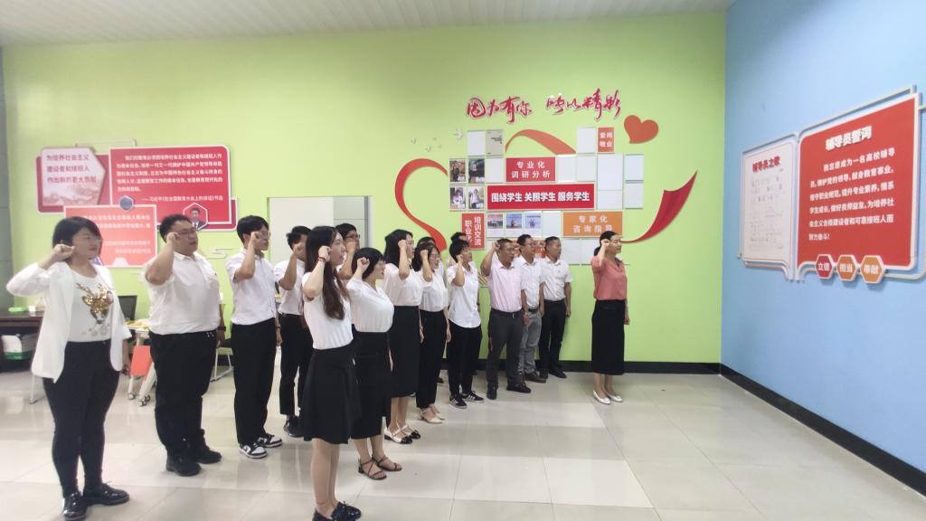 最后,全体辅导员集体宣誓,齐声宣读《高校辅导员誓词》。大家还围绕“辅导员综合素质能力提升”这一主题,展开了充分交流,表示要在未来的工作中始终牢记“立德树人”根本任务,勤学习、善思考、能奉献,做好大学生健康成长的指导者和引路人。