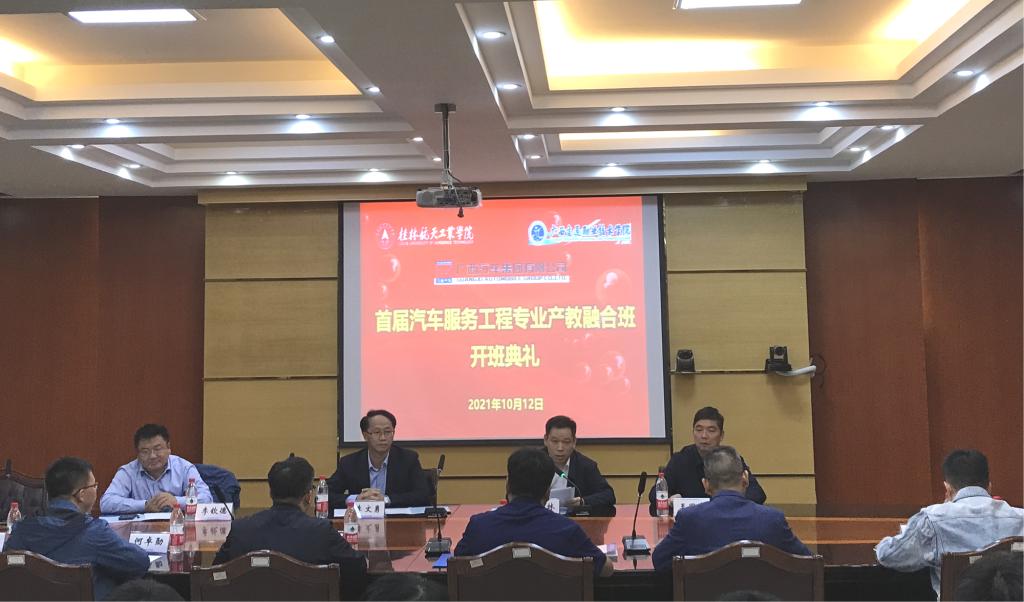 10月12日下午,best365官网汽车工程学院与广西交通职业技术学院首届汽车服务工程专业产教融合班在飞天楼517举行开班典礼。广西交通职业技术学院李文勇校长、best365官网孙山林副校长、广西汽车集团有限公司人力资源总监李钦德、best365官网教务处、汽车工程学院主要负责人及各单位代表出席典礼。