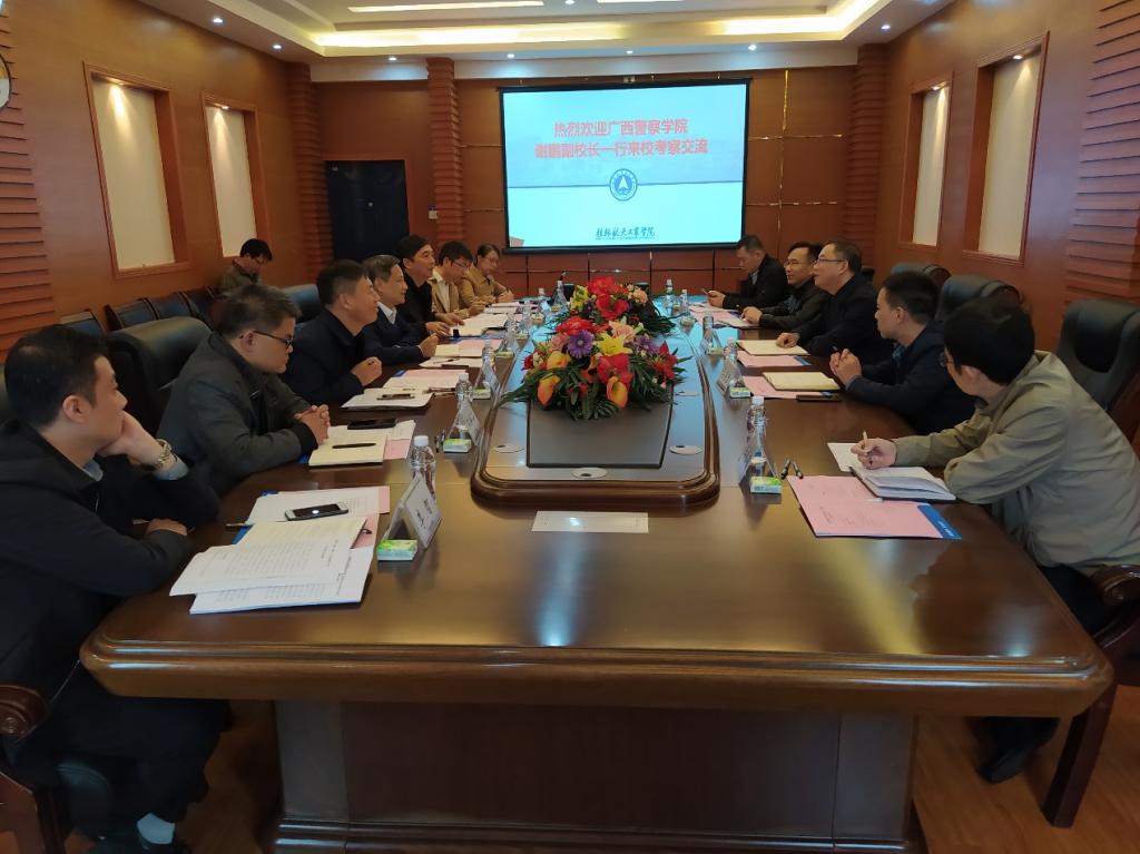 10月21日,广西警察学院谢鹏副校长一行来best365官网调研交流。best365官网副校长李智、教务处、教学质量监控与评估处、人事处、人文素质与创新创业学院负责人参加了会议,会议由李智主持。