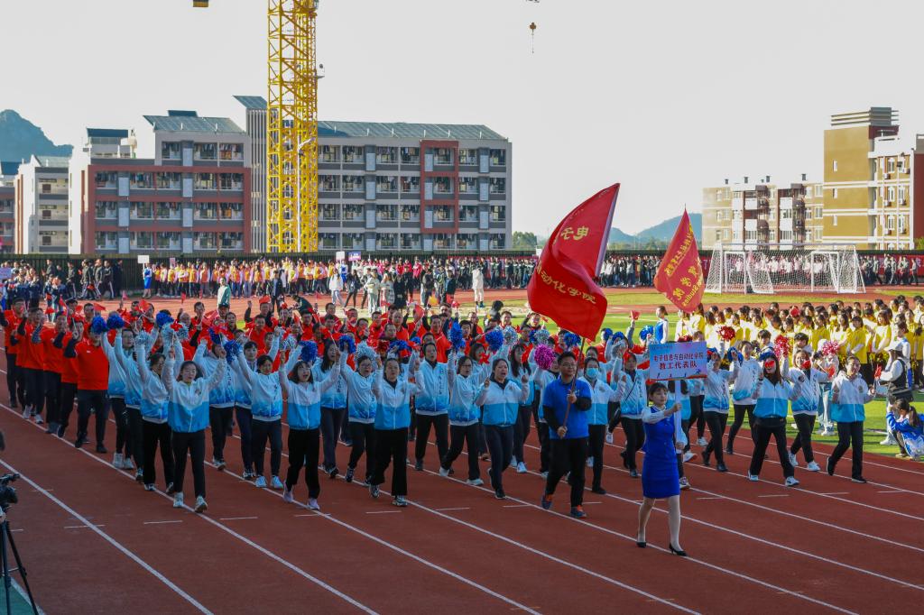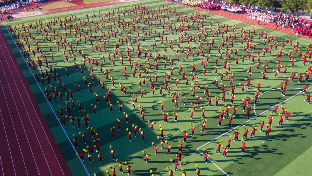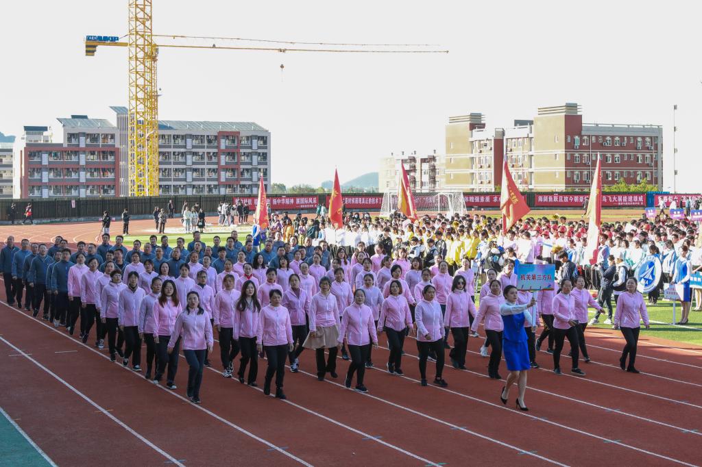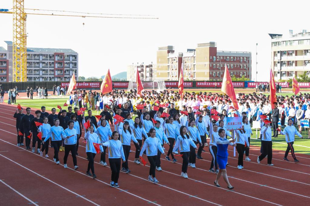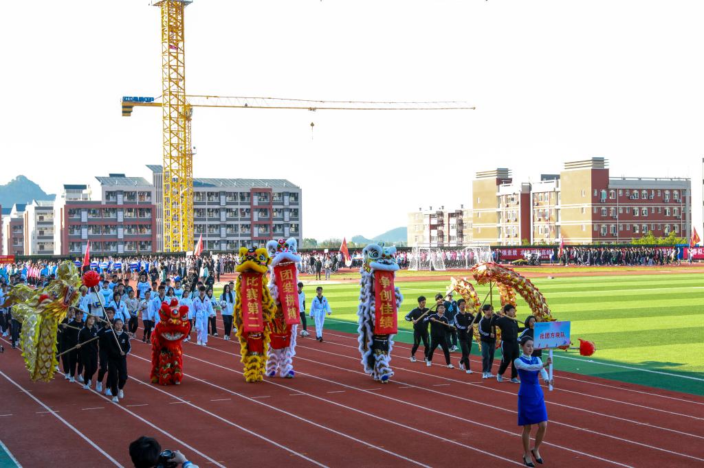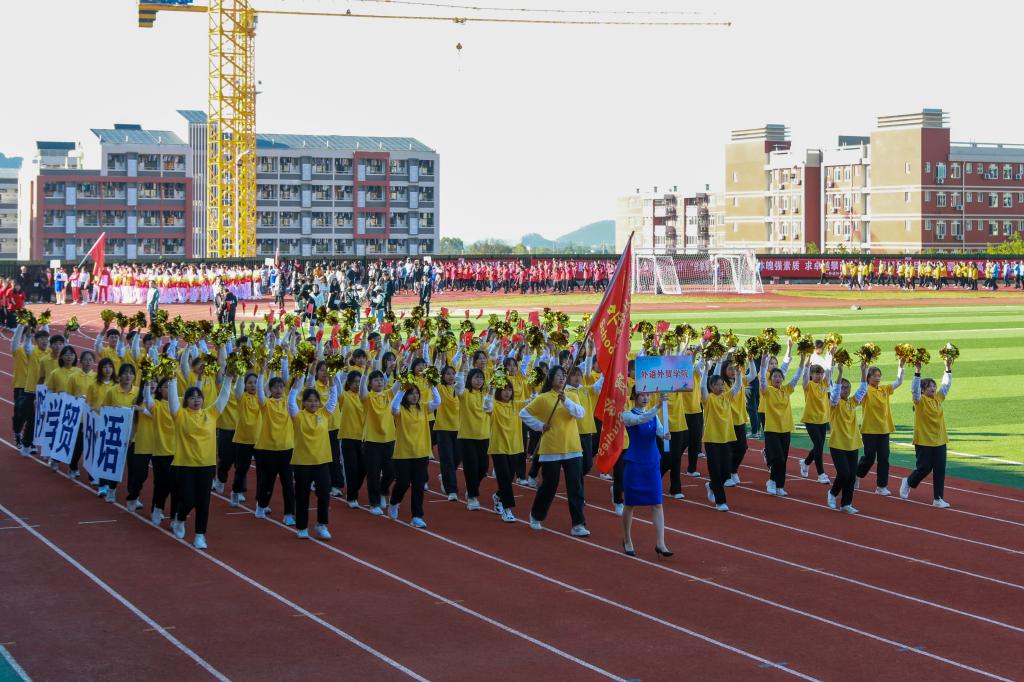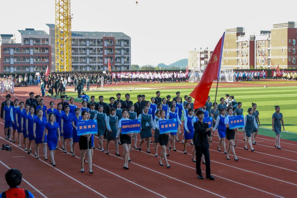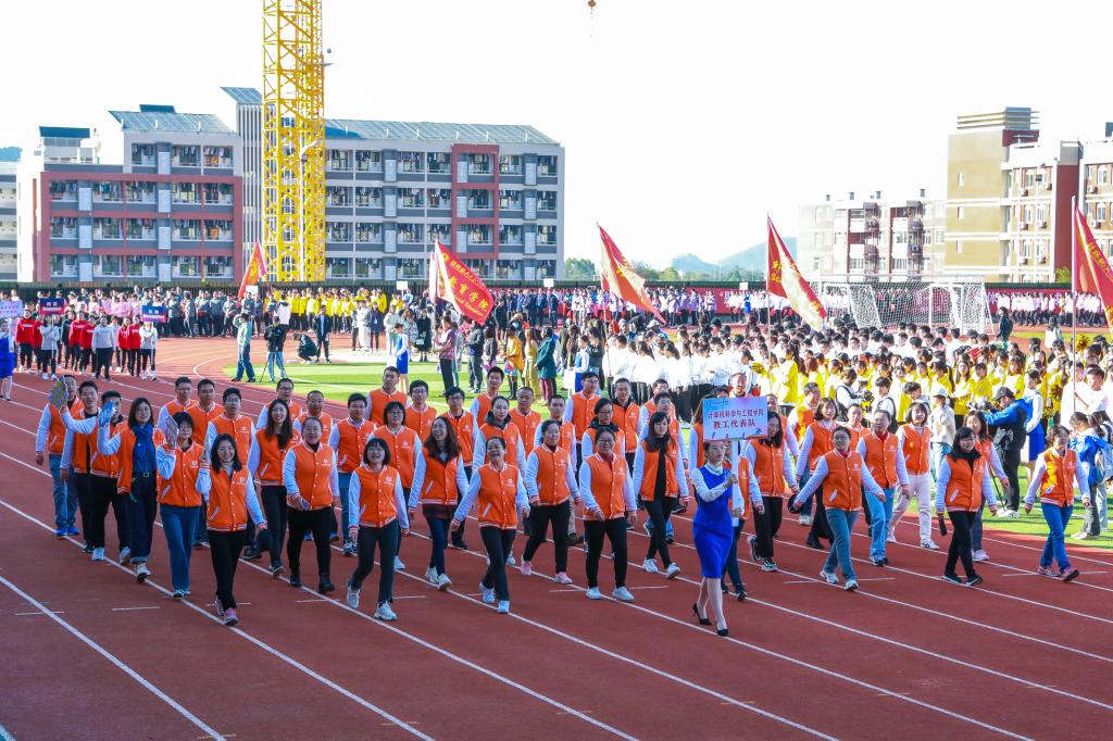 开幕式以精彩的龙狮表演《盛世欢腾》与各学院学生带来的大型团体操表演《未来有你》震撼开场,同学们以朝气蓬勃的姿态表达了他们对体育事业的热爱,展现了best365官网的风采。伴着响亮的进行曲,运动员以及各师生方块队依次入场,他们踏着整齐划一的步伐经过主席台前,响亮的口号响彻云霄,展示了best365官网师生的体育新风貌。