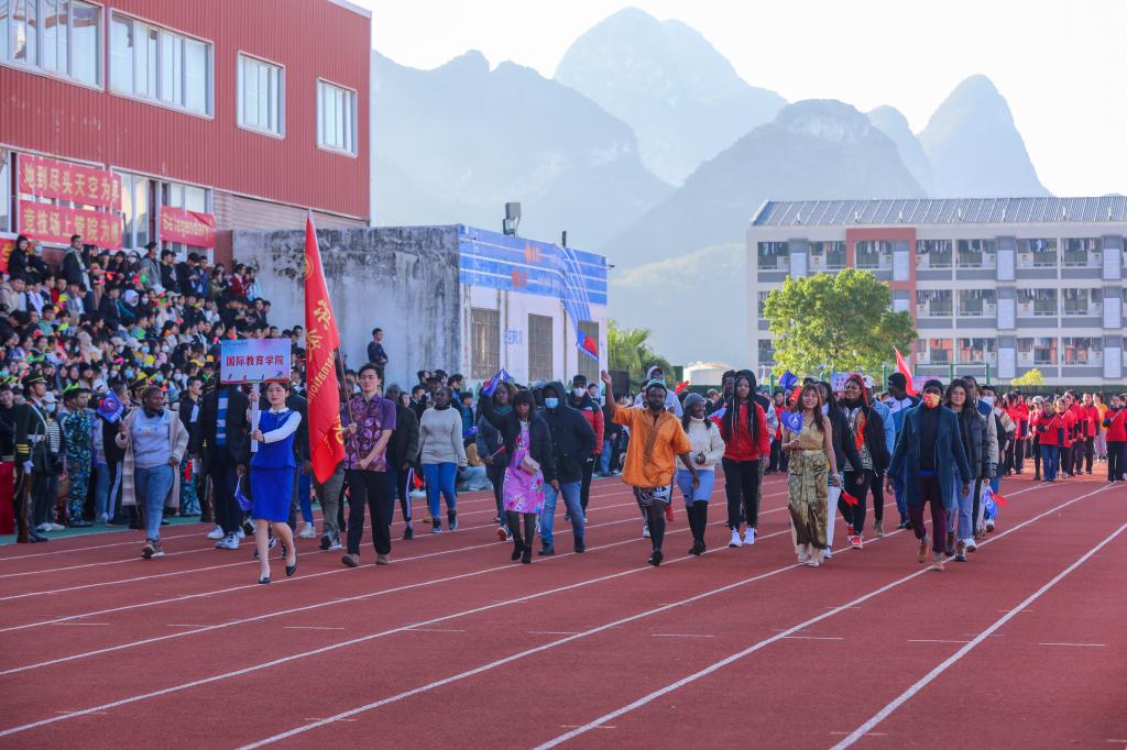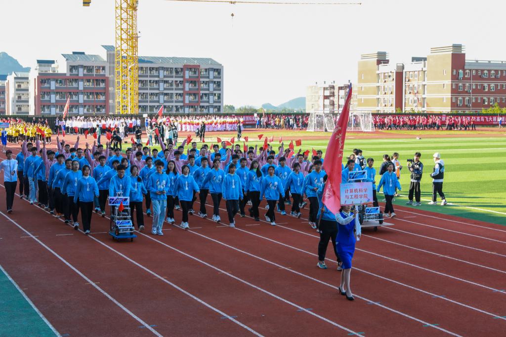 11月10日,best365官网第四十届田径运动会开幕式在南校区风雨足球场隆重举行。学校领导李幼平,易忠,罗延忠,胡泽民,詹皖生,李智,韦冠武,孙山林出席开幕式,学工部(处),教务处,校团委,校工会,体育部主要负责人,一至十院、国际教育学院以及继续教育学院主要负责人,师生代表参加开幕式。