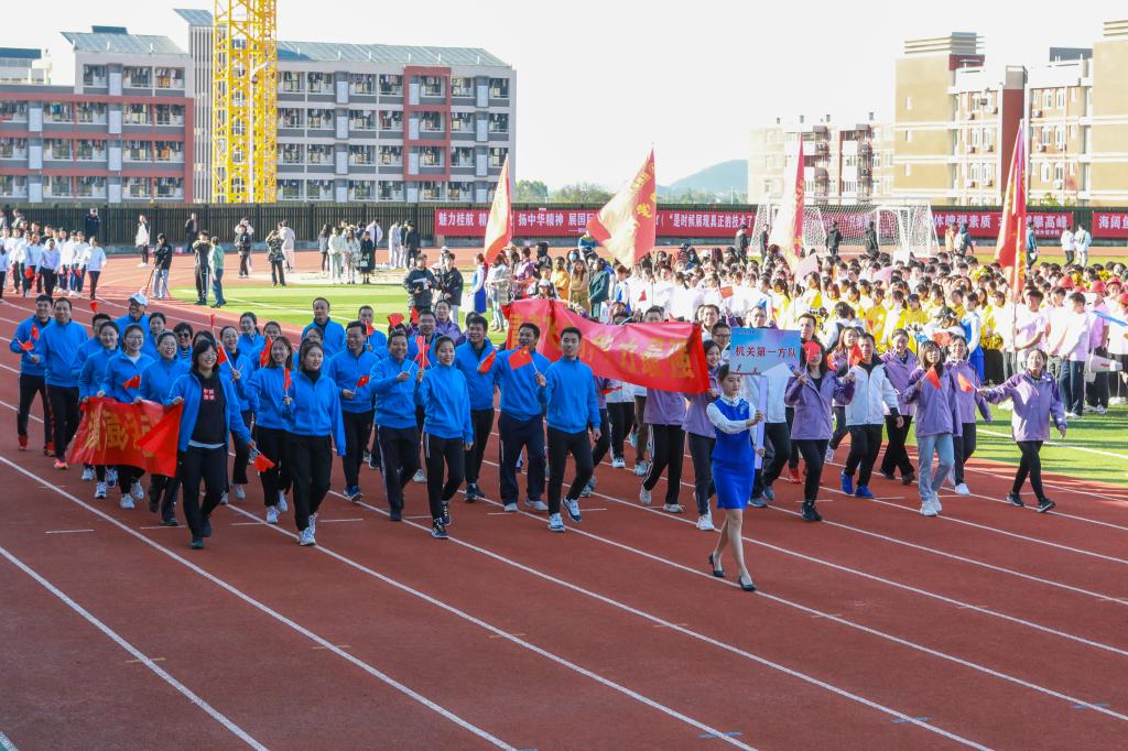 副校长詹皖生在致辞中希望全体师生将体育活动融入到日常的生活中,并预祝全体运动员在比赛中取得优异成绩,校运会圆满顺利举行。运动员代表和裁判员代表分别宣誓,表示严格遵守比赛规则,做到公平,公正,公开,展现体育新风尚,努力奋斗,争创佳绩。