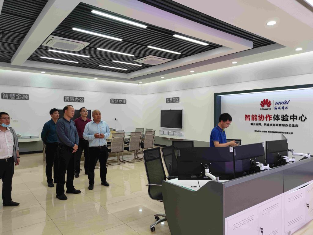 期间,李幼平一行参观了桂林海威科技股份有限公司智能协作体验中心、教室健康照明询证实验室等场所,详细了解了公司建设发展情况。
