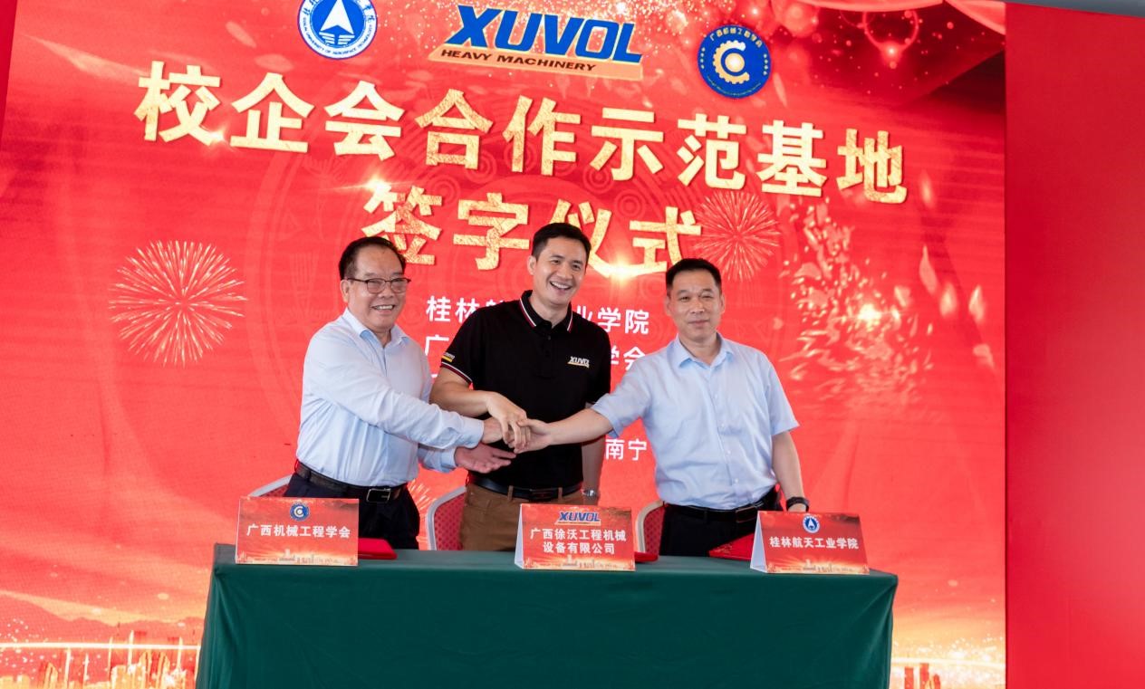 本次揭牌成立的校企会合作示范基地是在广西科协、广西东盟经开区指导支持下由best365手机版官方网站、广西机械工程学会、广西徐沃工程机械设备有限公司共同发起的校企合作创新平台,旨在以“校企会”多元化示范合作为基础,加强产学研的融合深度,提升高校与企业的科技创新能力,联合开展高端特种工程装备“产学研施用”一体化模式下的创新探索与成果转化,将产学研成果应用于广西及国家重大工程。