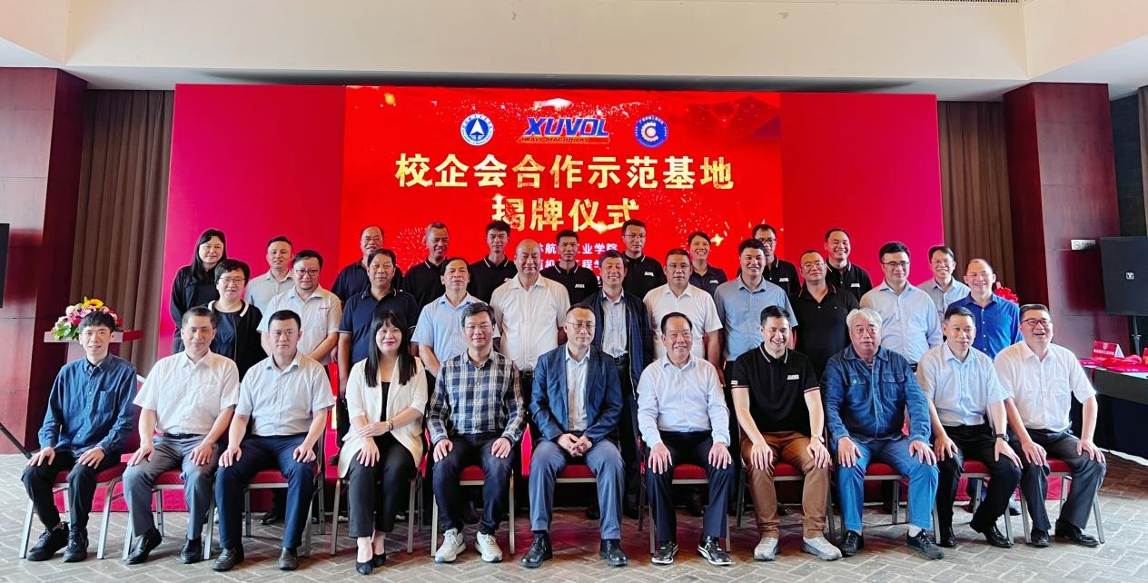 揭牌仪式上,吴尽昭高度赞赏校企会新型合作模式,代表学校向基地的支持方、合作方表达了诚挚谢意,向与会单位代表展示了全面服务广西经济社会发展、本土产业的诚意及学校的办学特色、办学优势。他强调桂航源于航天,传承航天,将一如既往地坚守好立德树人办学初心,坚定不移走好高水平应用性大学办学之路,与行业协会、专精特新企业携手构建“优势互补、合作共赢、协同发展”新型合作机制,共同开创“结对共育、人才共享、资源共用、发展共赢”新局面,高质量解决企业发展、人才培养、学生就业之困。期间,广西科协、广西东盟经开区、广西机械工程学会、广西徐沃公司等四方单位负责人分别从科技、经济、行业、企业等视角表达了共建基地的强烈愿望,提出了推进实质性合作的新招实招,并与学校签署战略合作协议。