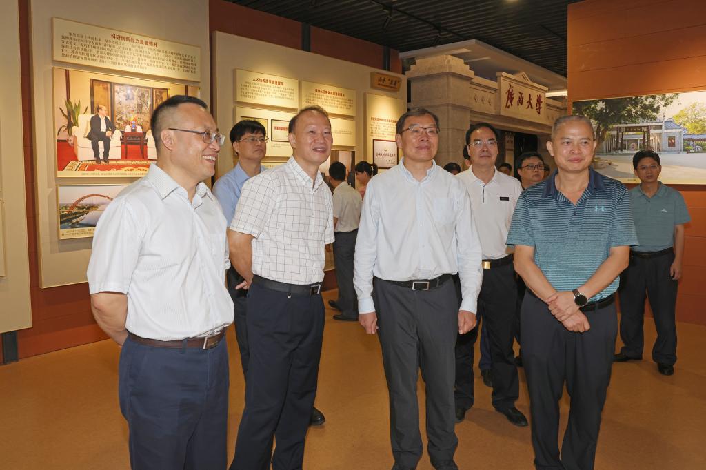 座谈会前,广西大学校长韩林海,副校长罗廷荣、刘向陪同调研组一行参观了广西大学时光轴、校史馆、大学生活动中心、土木工程大型结构试验平台等处。介绍了广西大学校史及发展概况、融媒体中心和土木工程世界一流学科建设情况。