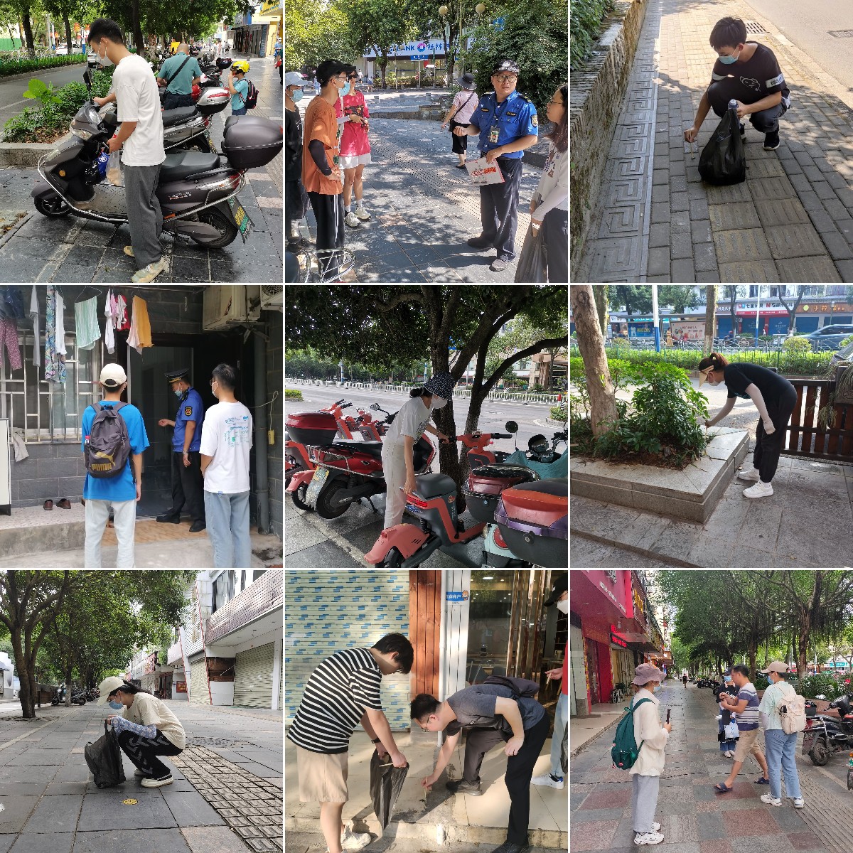 迎检工作正值假期,best365官网各学院发动师生员工积极参与到驻地城区的创城宣传、环境整治、城市管理等工作中来,认真完成包联点位创建工作。志愿者们积极响应,在包联的七星区龙隐路、七星路两个点位,协助城市管理执法部门纠正乱停乱放、清理卫生死角、清除路面垃圾,集中整治脏乱差现象,参与文明交通行为劝导,传播文明风尚。