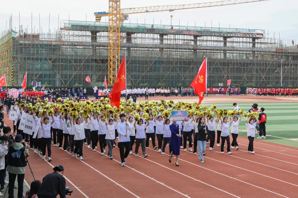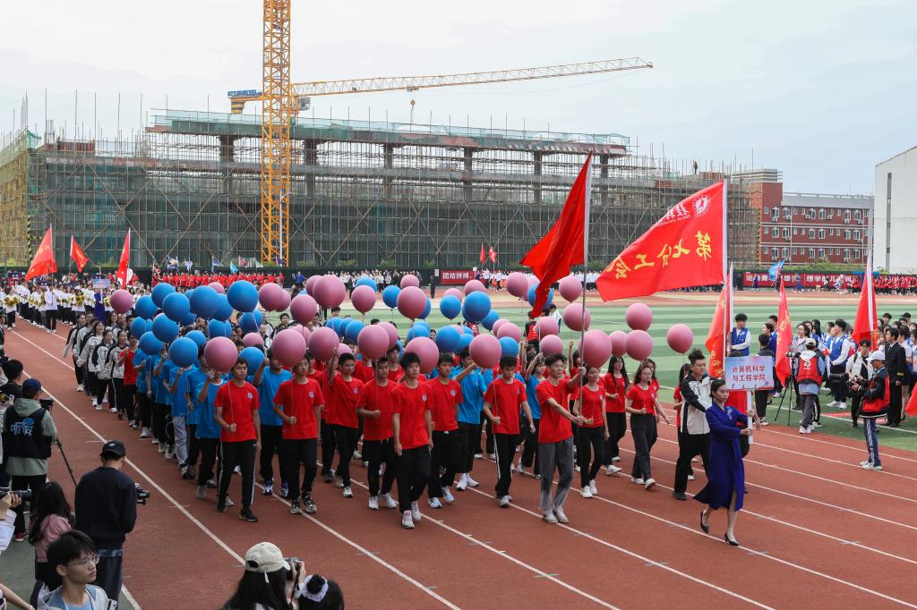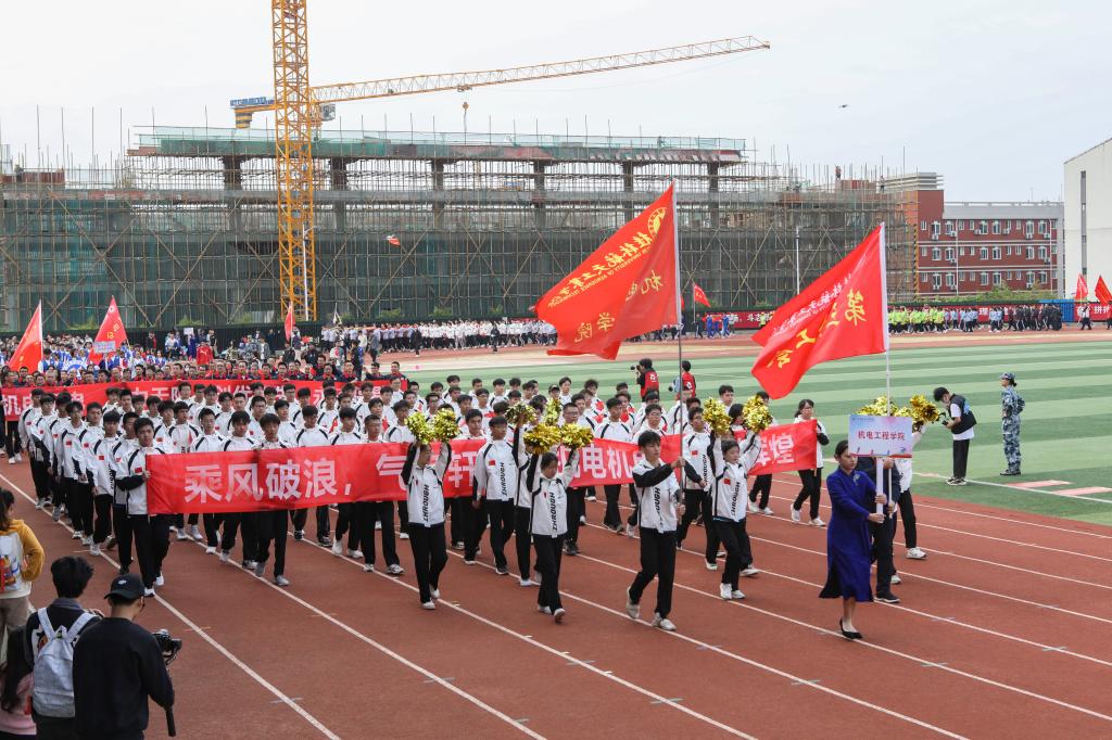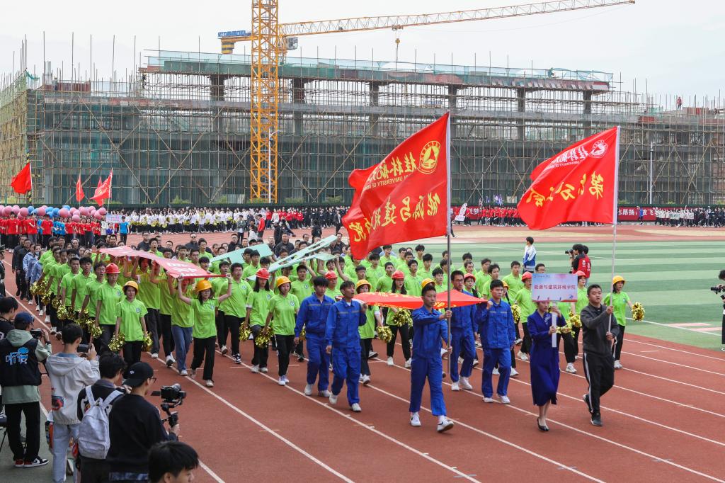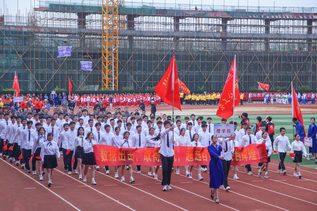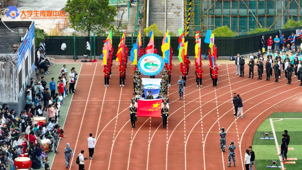 开幕式以精彩的情景表演《星火同行》《加油,桂航人》两个节目开场,同学们以朝气蓬勃的姿态表达了他们对体育事业的热爱、对桂航的热爱,展现了best365官网的风采。开幕式沿用了与往年一致的入场仪式与院系展演相结合的形式,来自不同院系和职能部门的方阵用新颖活泼、极具特色的表演和口号诠释着桂航人活力四射的体育精神,赢得全场热烈的喝彩声与掌声。