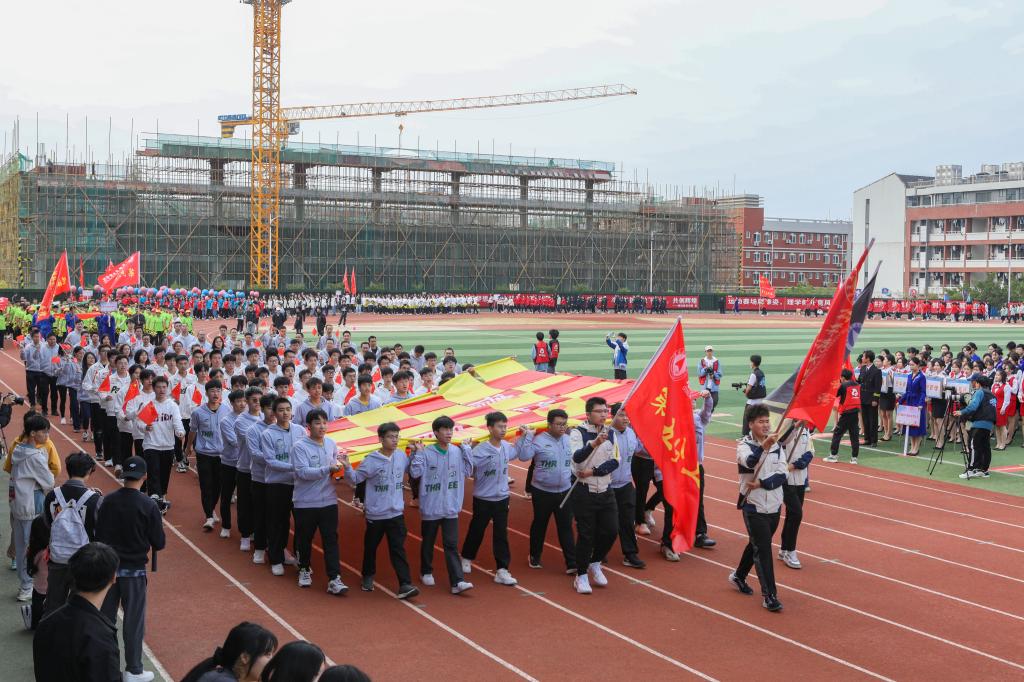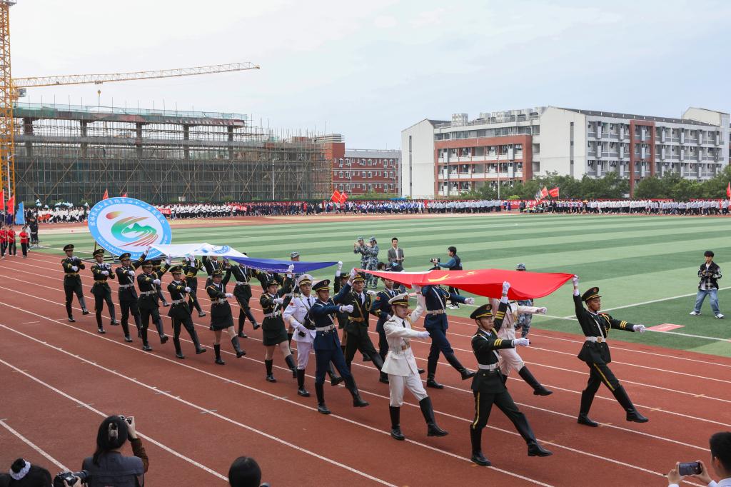 校长吴尽昭在致辞中希望全校师生都能积极参与各类体育健身活动,让体育运动成为一种习惯,让身心健康成为一种追求,以健康的体魄和饱满的精神状态投入到工作和学习当中,并预祝全体运动员在比赛中取得优异成绩,校运会圆满顺利举行。运动员代表和裁判员代表分别宣誓,表示严格遵守比赛规则,做到公平,公正,公开,展现体育新风尚,努力奋斗,争创佳绩。