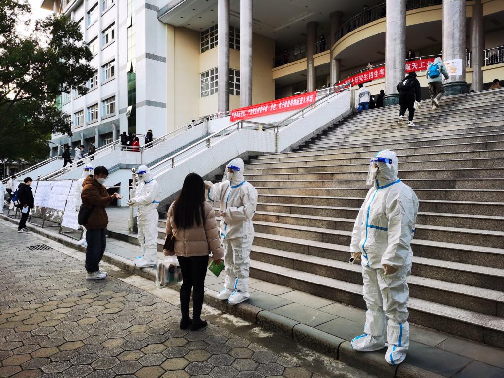 按照自治区新冠肺炎疫情防控指挥部、自治区教育厅、自治区招生考试院的统一部署安排,学校特意为考前核酸检测结果为阳性的考生设置了备用隔离考场,配套专门监考和考务人员。同时,还设立多个应急考场,对于考前核酸检测结果为阴性但在考试前和考试期间身体不适的考生,经考生提出和医生研判,立即启用应急考场进行考试,并配备相应的监考老师。本次考试有学校各教学单位、职能部门的共计千余名教职工担负监考、考务、防疫、后勤工作,所有工作人员各司其职,坚守岗位,全力以赴确保了考试的顺利进行,做到了“应考尽考、平安研考”。