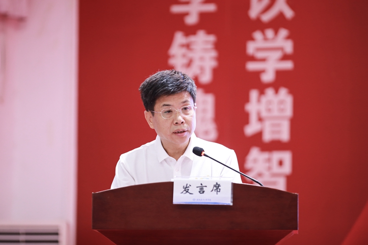 纪念大会上,韩峻峰代表学校向莅临学校参加活动的各位来宾和校友,表示诚挚的欢迎与亲切的问候。并提出了三点希望:一是希望车队的队员们始终不忘初心,敢于追梦。时刻保持谦虚谨慎,不断追求卓越,迎接更高更强挑战。二是希望车队指导老师继续悉心指导,倾囊相授。三是希望校内有关部门继续支持保障,悉心呵护。典礼上,他为新赛车揭幕,并为队长授予队旗。