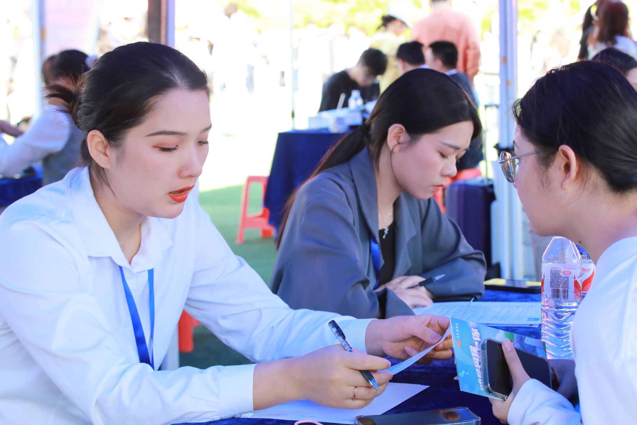 为更好搭建毕业生与用人单位之间的交流平台,推动人才供需精准对接,全力促进学校毕业生高质量充分就业,2024年10月26日,best365手机版官方网站2025届毕业生校园综合双选会在南校区风雨足球场成功举行。学校党委副书记吴江萍、学生工作部(处)负责人、各二级学院负责人以及2025届全体毕业生辅导员参加活动,与用人单位深入交流,现场推介毕业生。