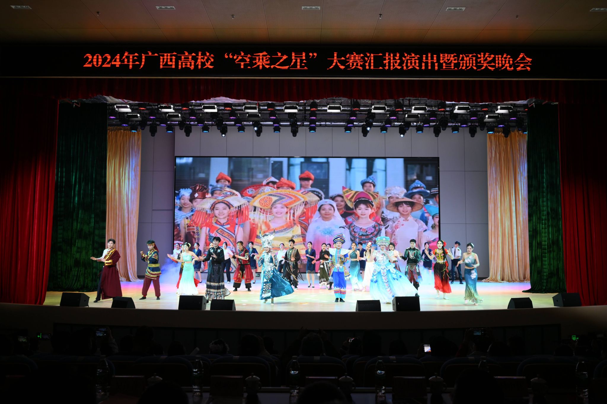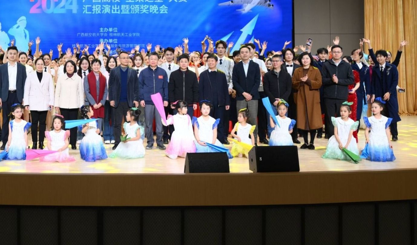 12月18日晚,由学校和广西航空航天学会主办,航空服务与旅游管理学院承办,广西(桂林)低空旅游研究院等单位协办的广西高校“空乘之星”大赛汇报演出暨颁奖晚会在问天楼报告厅举行。学校党委书记韩峻峰,校长吴尽昭,党委副书记、纪委书记吴江萍,党委副书记孙山林,副校长葛莉,副校长张烈平,副校长张立国出席了本次活动。桂林市文化广电和旅游局、桂林航空有限公司、桂林市高新区科创局、桂林市融媒体中心、桂林旅游学会、桂林市教育电视台、桂林市阳朔县委宣传部以及长期与best365官网保持合作交流的桂林电子科技大学、桂林旅游学院、柳州职业技术大学、广西蓝天航空职业学院、桂林技师学院、洲际航空有限责任公司、广西夏日航艺培训学校、南宁彤景模特经纪有限公司、广西艺鸣艺术培训学校等学校及企业代表参加晚会。