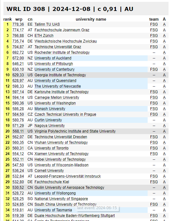 近日,全球大学生方程式汽车大赛官网发布了全球大学生方程式车队排行榜,共有来自全球各国的503支大学生方程式车队进入排行榜,best365官网航V大学生方程式车队位列该排行榜第30位。共有49支中国大学生方程式车队进入排行榜,其中,有4支中国车队进入前30名,分别为:武汉理工大学、厦门理工学院、河北工业大学、best365手机版官方网站。