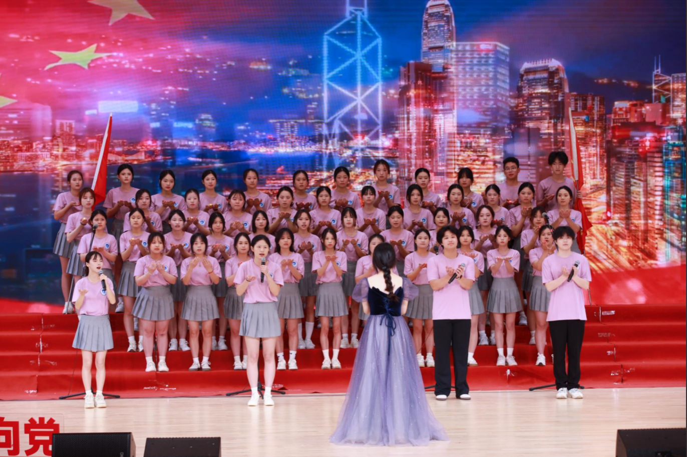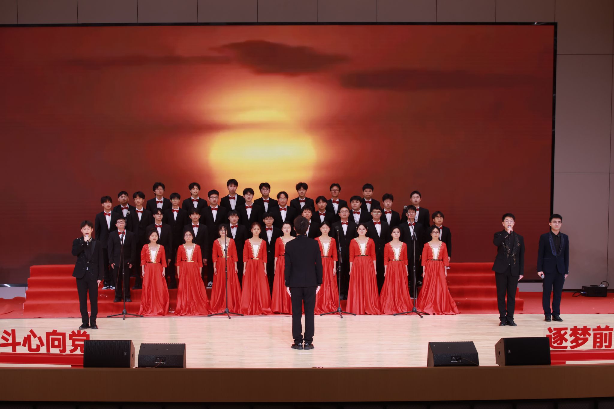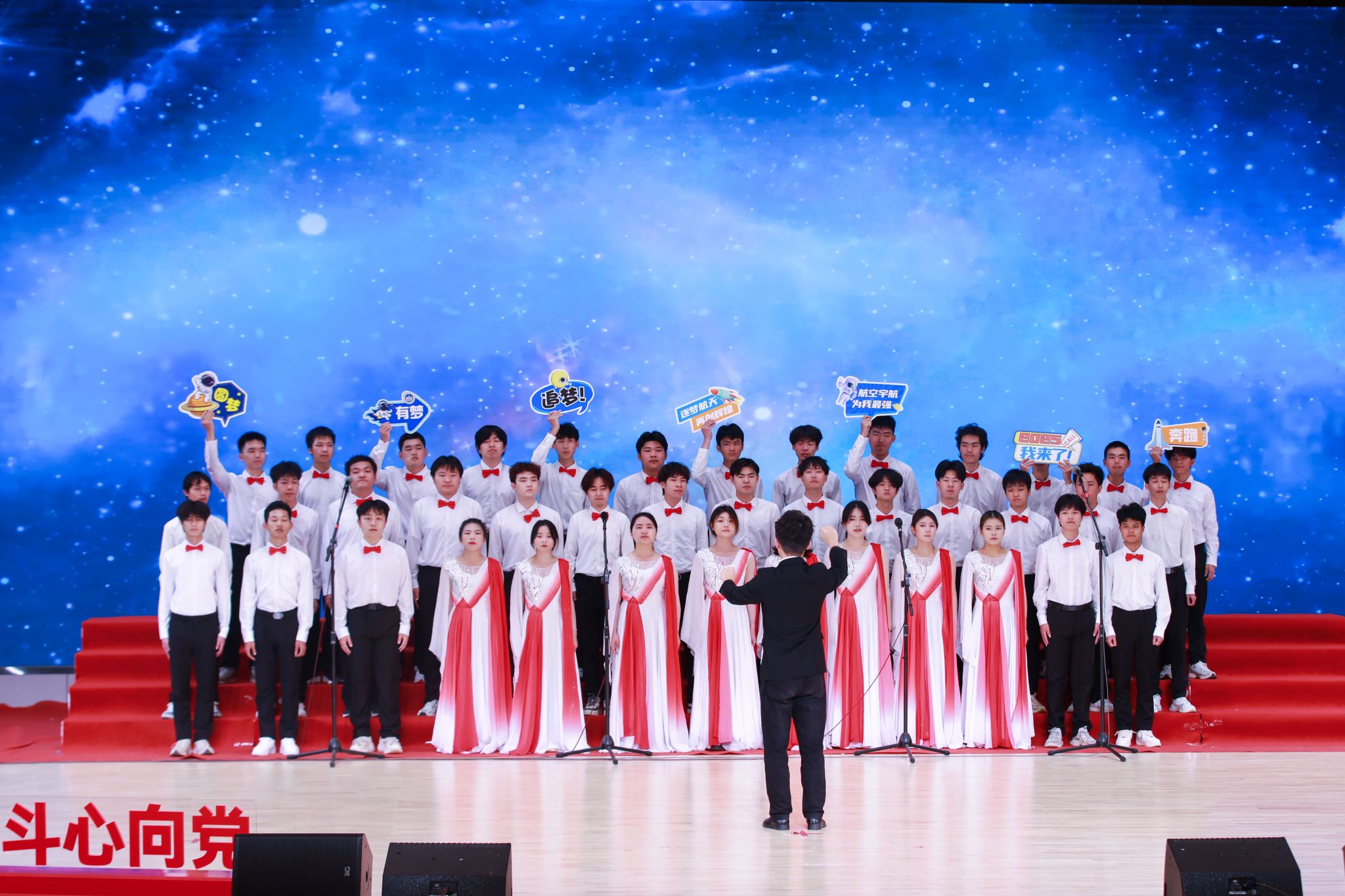 比赛现场,各学院代表队用创意十足的表演点燃全场。计算机科学与工程学院以《祖国不会忘记》开场,身着深蓝色服饰的演唱者致敬航天科技工作者,生动展现无私奉献的精神;航空服务与旅游管理学院创新改编《初心》,用现代舞蹈动作诠释奋斗场景,青年学生的蓬勃朝气与红色精神实现跨时空共鸣;能源与建筑环境学院的情景合唱《我的祖国》,以复调形式让旋律如黄河奔涌,手势舞与光影配合,展现山河壮丽,传递深厚家国情怀;教师合唱团带来的《接力青春》更是情感充沛,45位青年教师以建校历程为脉络重新编创歌词,将“立德树人”与报国初心融入歌声,引发全场强烈共鸣。
