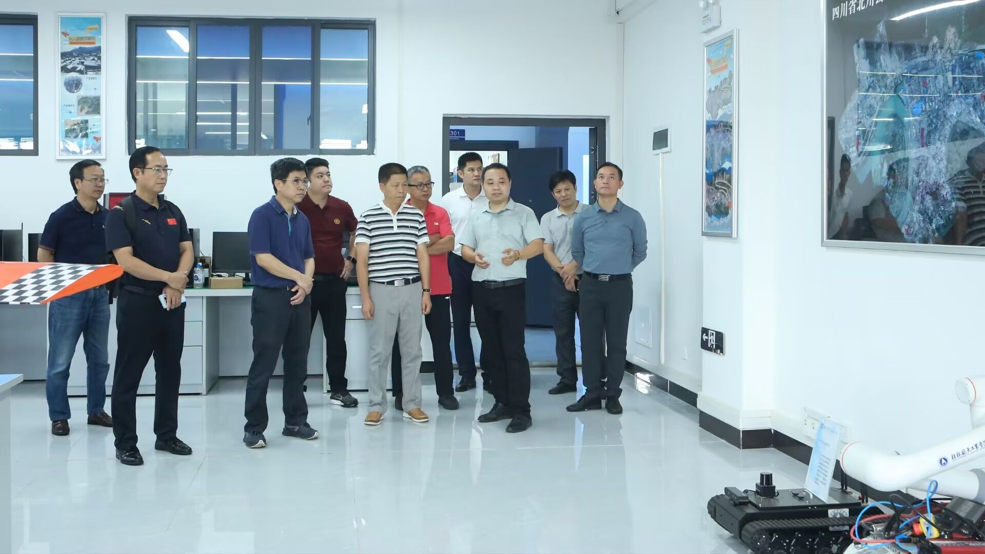 会前,石昆、王昕一行参观了航空宇航学院航空航天工程实验教学中心。