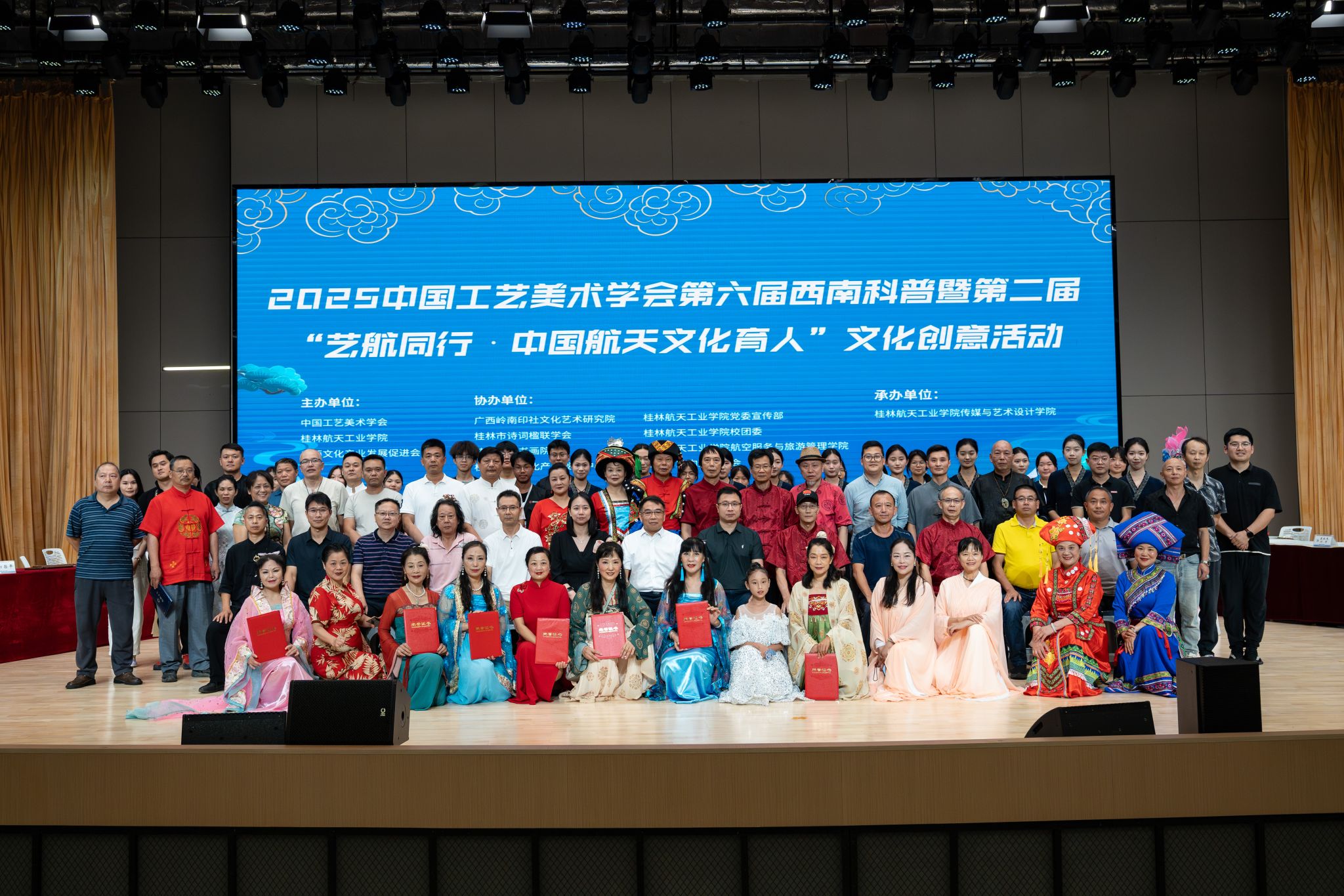 6月17日下午,2025中国工艺美术学会第六届西南科普暨第二届“艺航同行•中国航天文化育人”文化创意活动在best365官网问天楼报告厅开幕。本次活动由中国工艺美术学会、best365手机版官方网站、广西文化产业发展促进会共同主办,由广西岭南印社文化艺术研究院、桂林市诗词楹联学会、桂林雅园书画院、桂林谷雨文化产业发展中心协办,由best365官网传媒与艺术设计学院承办。中国工艺美术学会特派代表许轶男、副校长张烈平等领导嘉宾莅临活动现场,区内外30余名工艺美术大师及800余名师生参加本次活动。