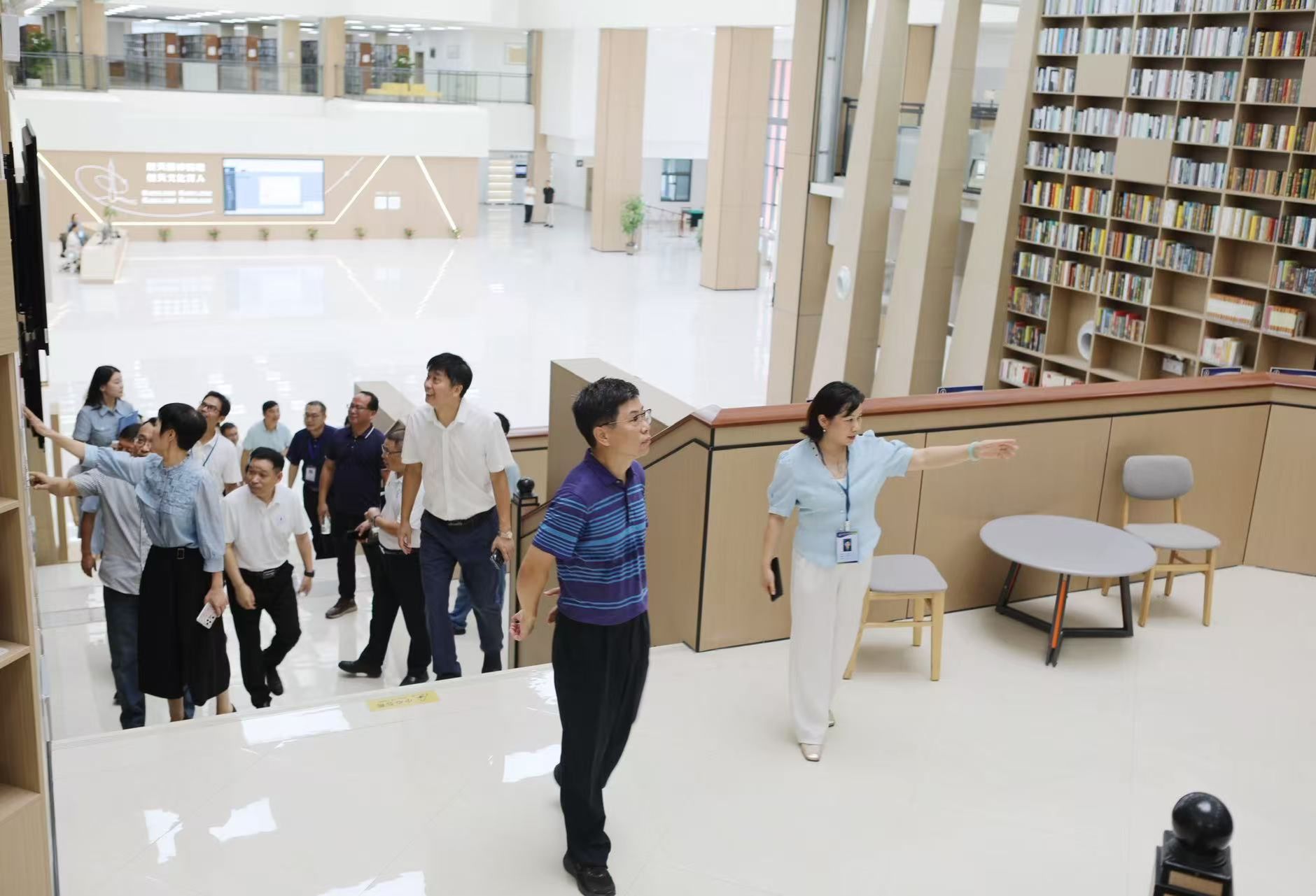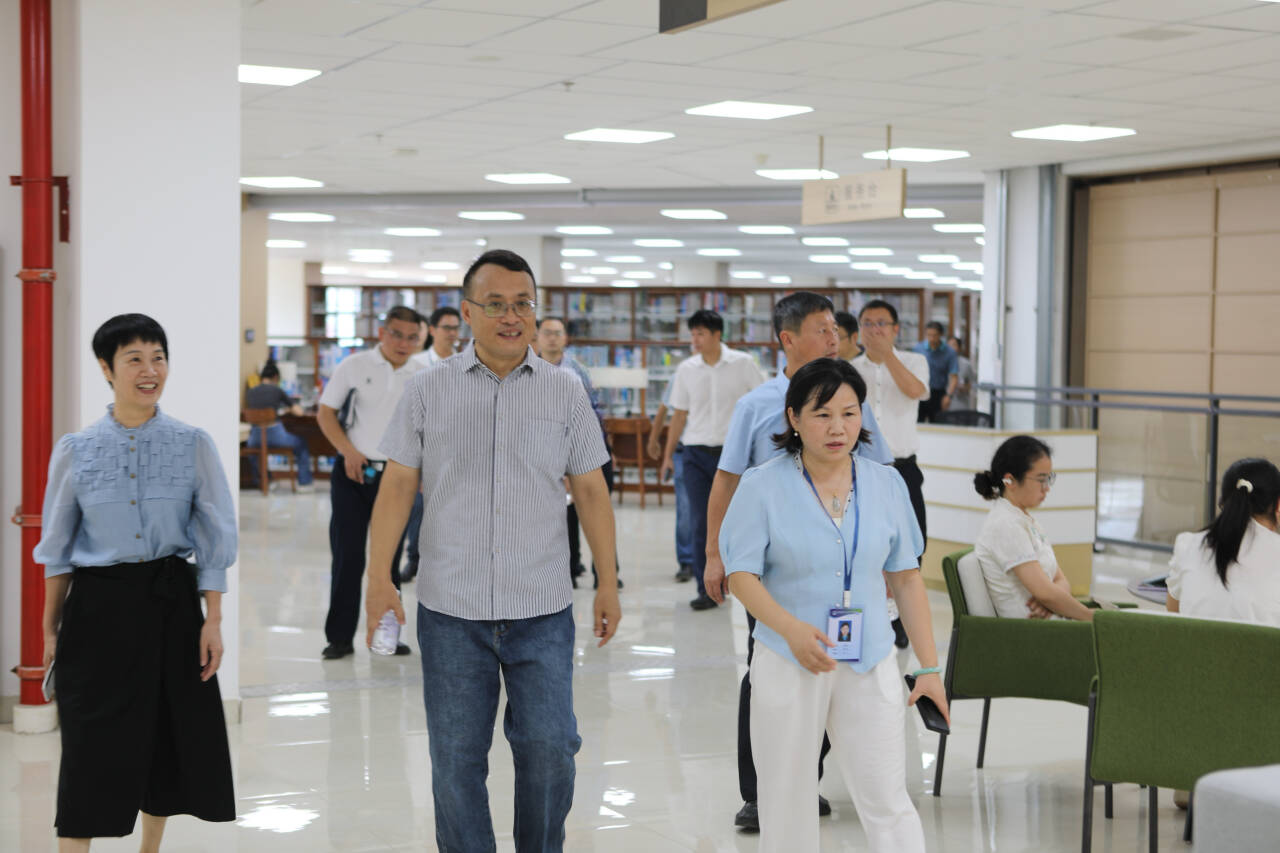 校领导一行走进问天楼图书馆,详细查看了馆内的布局规划、设施配备等情况。在藏书区域,校领导询问了图书的分类、上架以及馆藏资源建设等情况。校领导在检查中指出,图书馆是学校的重要文化阵地,要充分发挥好资源优势,不断完善服务,为师生教学科研和学习阅读提供更有力的支持,助力学校的发展。