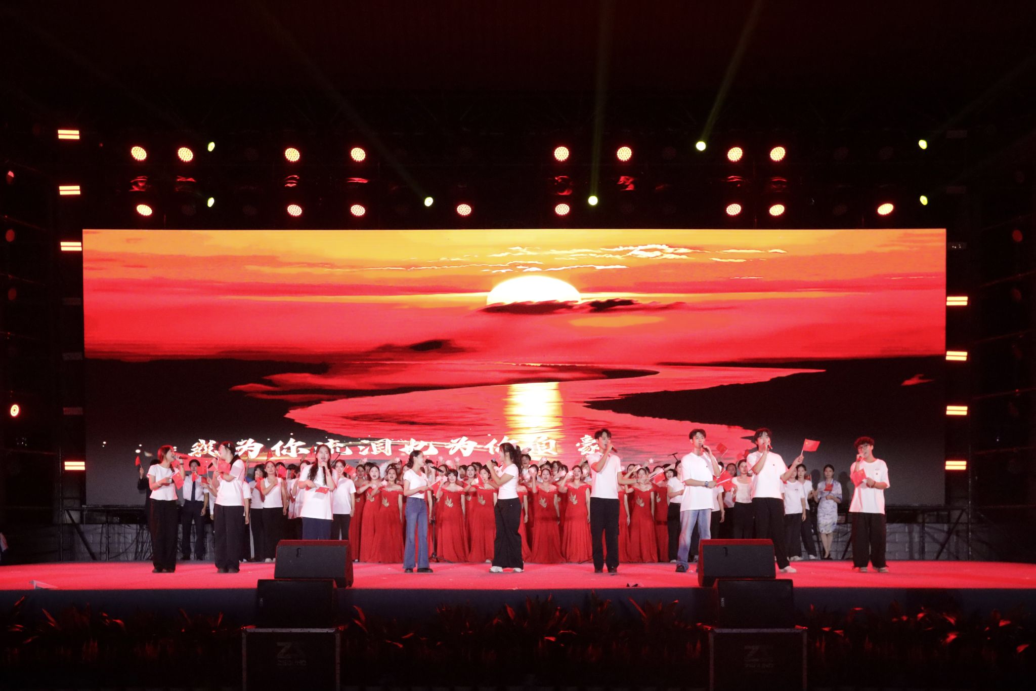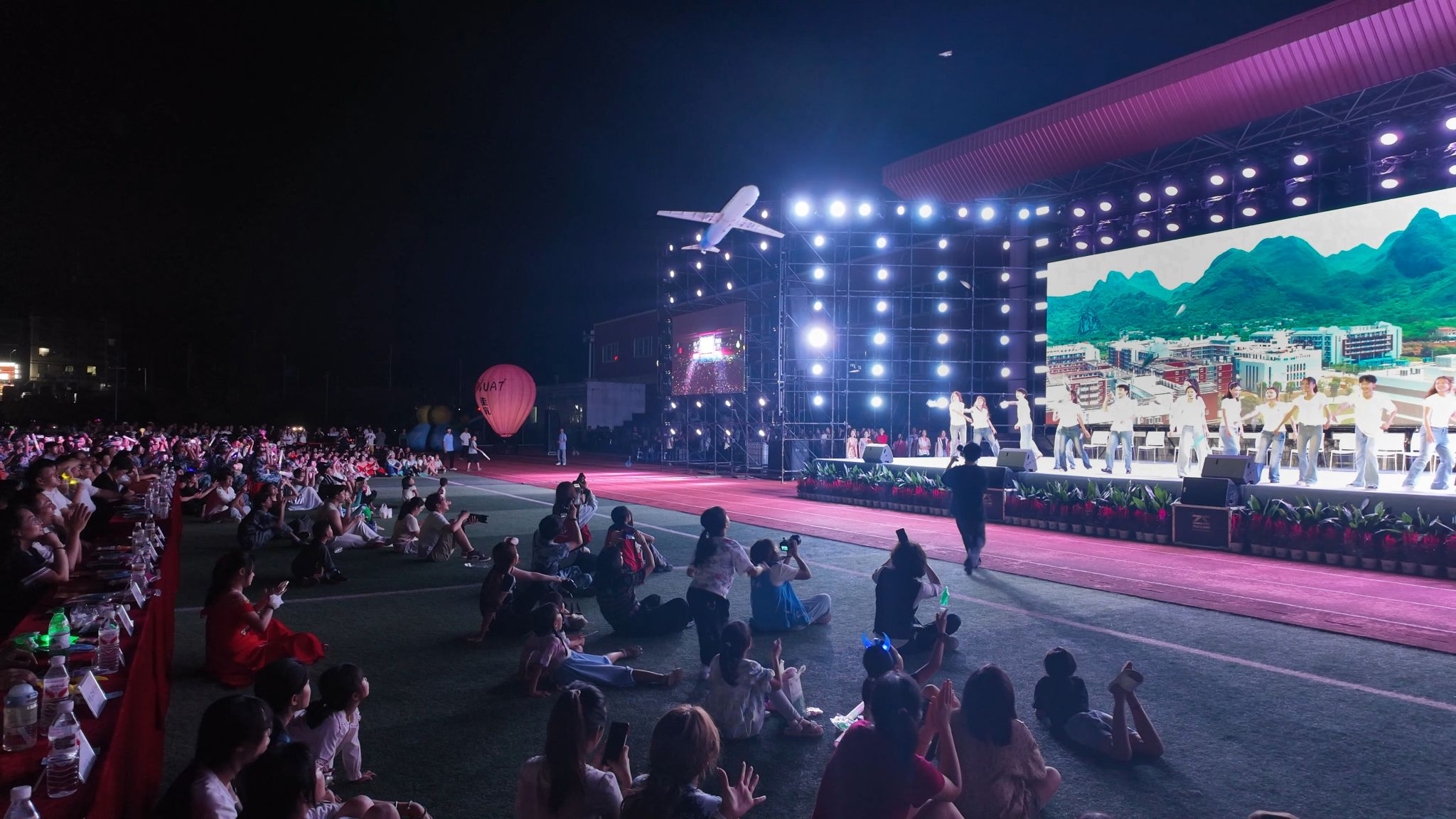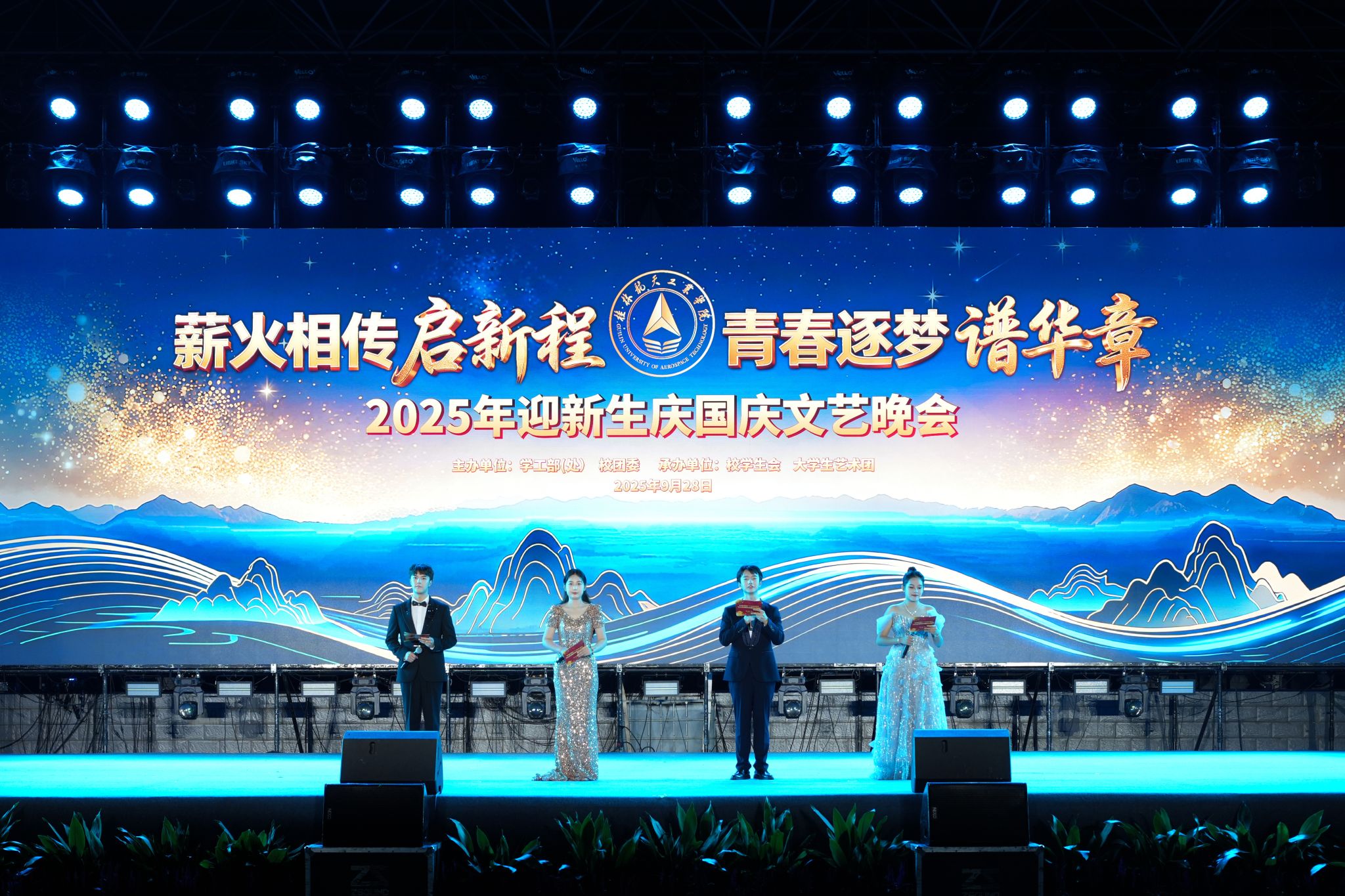 为庆祝中华人民共和国成立76周年,赓续航天精神,繁荣校园文化,喜迎2025级新同学的到来。9月28日晚,由学工部(处)、校团委主办,校学生会、大学生艺术团共同承办的“薪火相传启新程·青春逐梦谱华章”2025年迎新生庆国庆文艺晚会在best365官网南校区田径场隆重举行。学校领导韩峻峰、孙山林、柯君行、杨永昌,各职能部门负责人、教学单位负责人、军训教官、教师代表、校友代表以及全体新生5000余人共同观看了本次晚会。