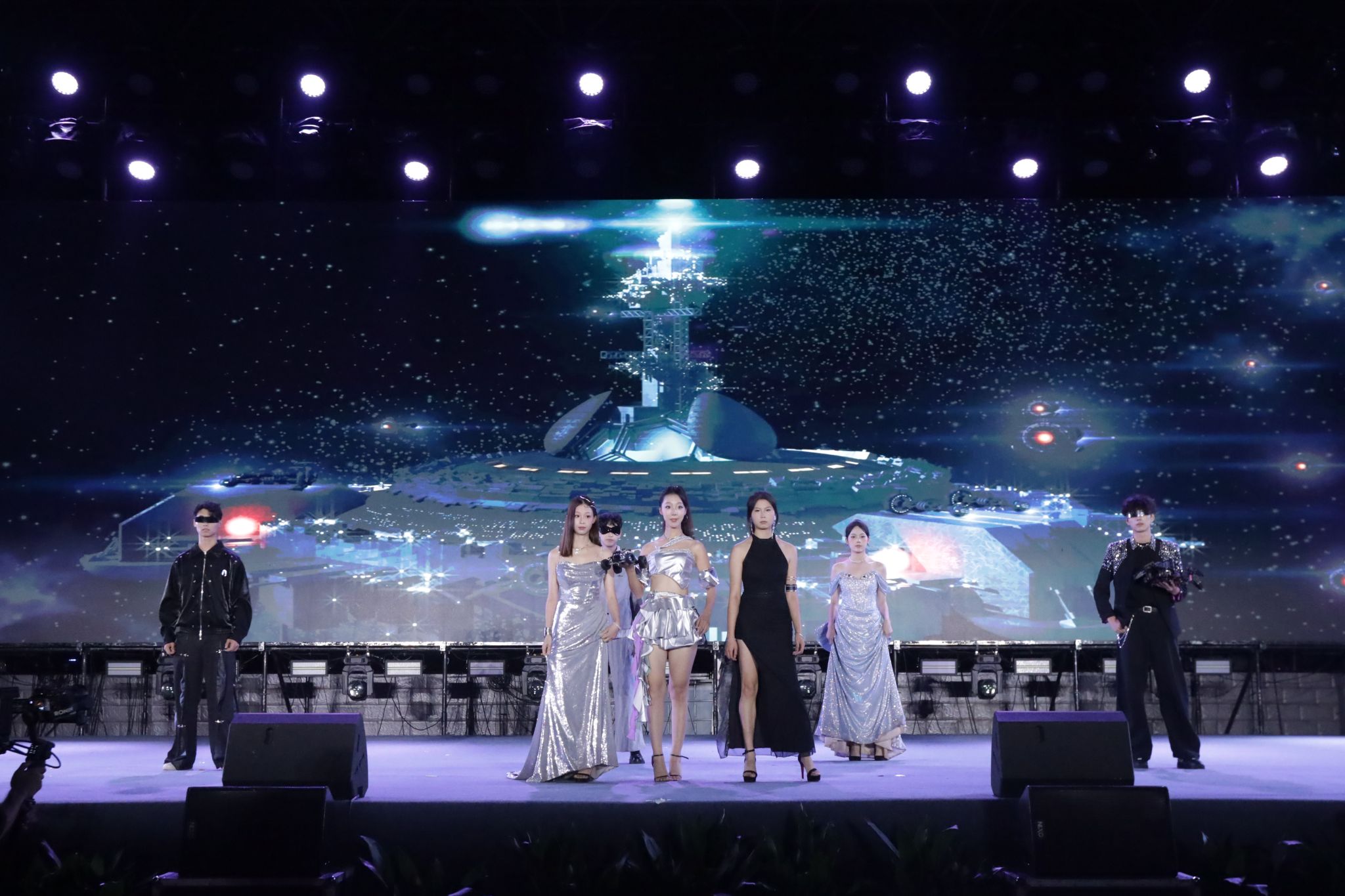 本届晚会深度融合科技元素与艺术表演,打造出一场极具航空航天特色的视听盛宴。街舞《翼动节拍》将无人机飞行轨迹与街舞动作精准配合,展现青春节奏与科技灵动的完美融合;走秀《寰宇衣章》创新引入“机器人”、“机器狗”与演员同台表演,在民族服饰中融入航天符号,同时展示了学校物联网创新创业基地和电子爱好者协会学生自主设计的科技产品,呈现“科技+民族”的创意对话;情景舞蹈《你好,新同学》通过C919起航的舞台意象,寓意新生大学生活的全新启航。