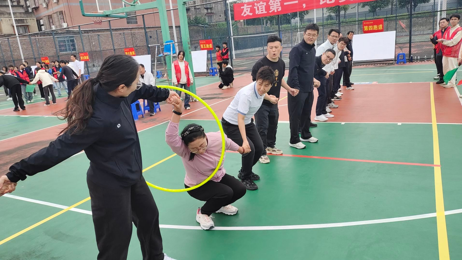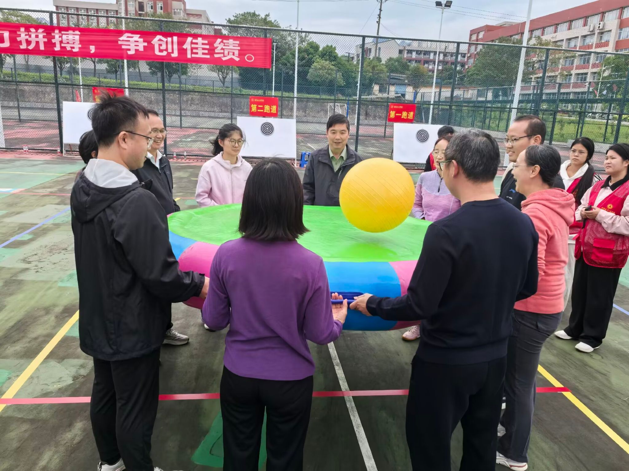 趣味运动会开幕前,各分工会开展拉歌比赛;在各项目成绩进入紧张的统分环节时,教师登台献唱,有奖问答环节开启,教职工踊跃参与,在互动中共享欢乐,让活动全程活力满满。