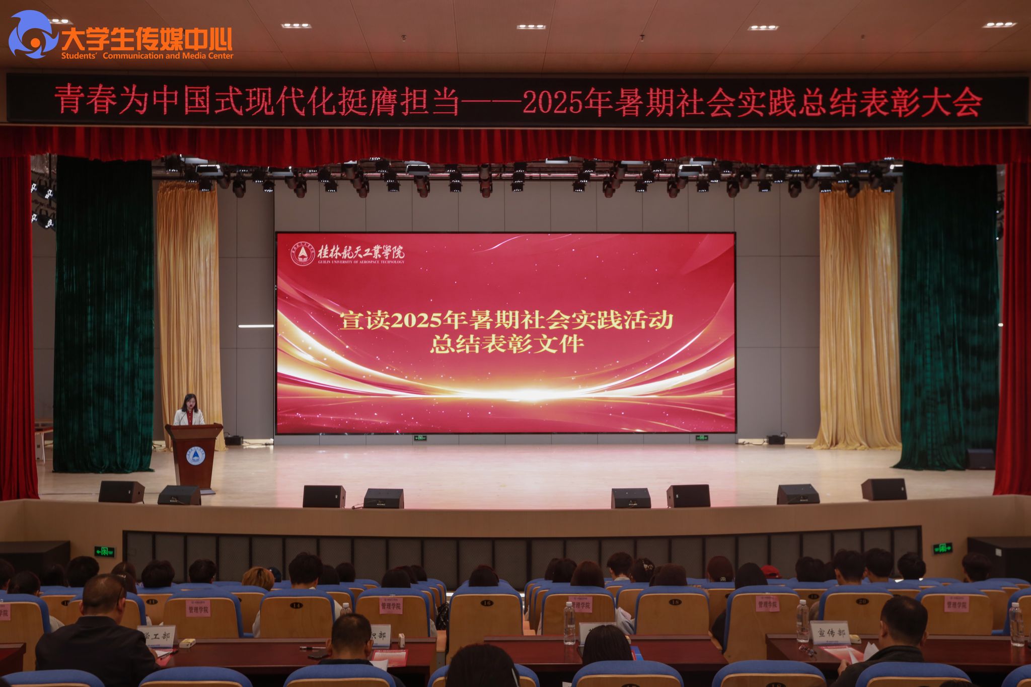 大会在庄严的国歌声中拉开了帷幕。与会师生共同观看了2025年暑期社会实践纪实片《新时代的青春答卷》,影片生动再现了各团队深入中国广袤大地、服务基层的奋斗身影与感人故事,展现了桂航师生扎根热土、践行青春使命的责任担当。