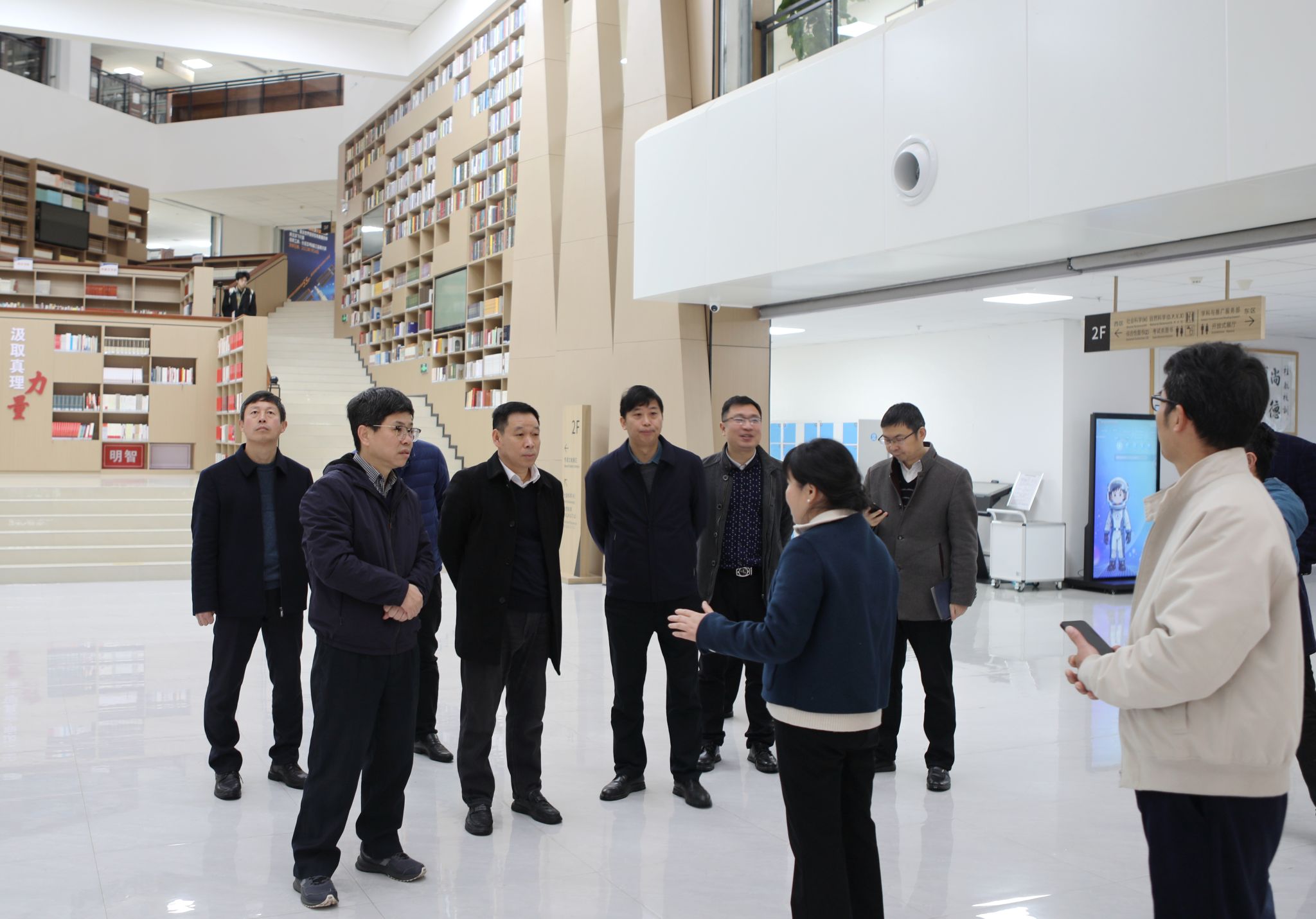 在问天楼图书馆,检查组检查了图书借阅区、阅览室的消防设施、用电安全、环境卫生及开放准备情况,强调图书馆要优化服务保障,为师生提供安全、舒适的阅读学习空间。
