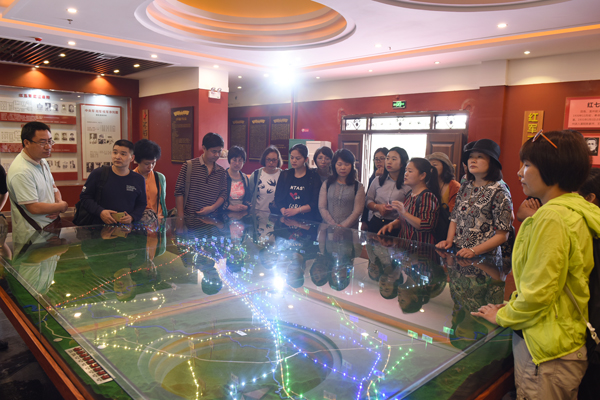 在灌阳县红色教育培训基地,讲解员向大家讲述了长征中最为惨烈的一段历史——新圩阻击战和绝命后卫师的悲壮历史,并带领全体人员参观了新圩阻击战博物馆、杨柳井战地指挥所和下立湾战地救护所等革命旧址。全体人员还沿着当年红军战士的足迹,重走战时道路,身临其境感受着革命先烈为了解放事业而浴血奋战的精神。烈士英魂的安息地酒海井红军烈士纪念园内,大家都静静地为英烈们哀悼,表达哀思和敬仰之情。