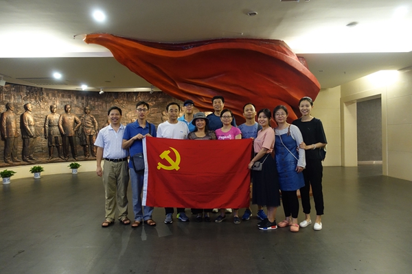 “我志愿加入中国共产党……”,6月24日,理学院全体党员教师来到桂林市八路军办事处开展党员活动日主题教育活动,面对鲜红的党旗,在党支部书记李修清同志的带领下,高举右拳,重温了入党誓词。今年是中国共产党建党97周年,此次党员教育活动也是理学院直属党支部为迎接党的生日到来所专门开展的一系列的“七一”主题实践活动之一。