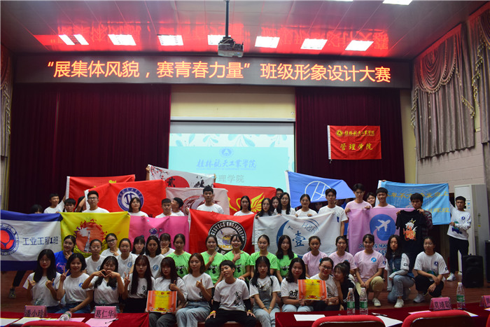 大赛以精彩飞扬的舞狮表演和《国家》合唱拉开帷幕。紧接着14个参赛班级通过PPT讲解及班旗、班服展示、才艺表演等来展现班级风貌:有的采用国旗、校徽等将爱国和爱校元素融于设计中;有的将专业特色元素绘入其中,如人力资源管理专业将专业名称的英文缩写的“HR”缀到班旗和班服上,财务管理专业用算盘表现专业特色,物流工程专业用了飞机和卡车等;有的班级设计彰显青春活力和丰富的想象力,如“大白鲨”寓意着强者和勇往直前,班服上的“小熊”以英文谐音寓意着有备而来,小熊手上的“锤子”则代表公正有序。