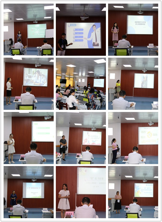 参赛选手以“‘疫’路同心,关爱生命”为主题,配合PPT展示,结合当下的疫情形势进行讲授,采用举实例、播放音频、现场演示等方式分别就毕业就业、恋爱心理、情绪管理、人际交往、生命教育、等常见心理健康问题展开阐述,图文并茂,并不时与观众互动,现场气氛十分活跃。经过一番角逐,潘小玲老师夺得一等奖,林若虹、杨帆两位老师获得二等奖,三等奖由朱江江、覃宇华和李施燕老师收入囊中,汪水兰等五位老师获得优秀奖。
