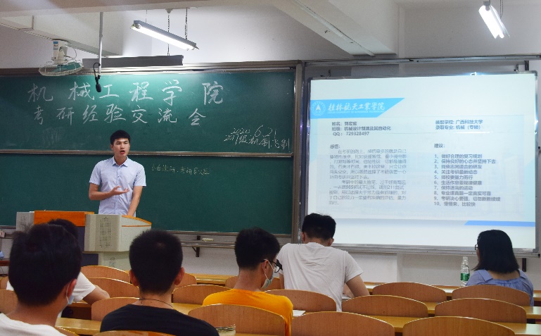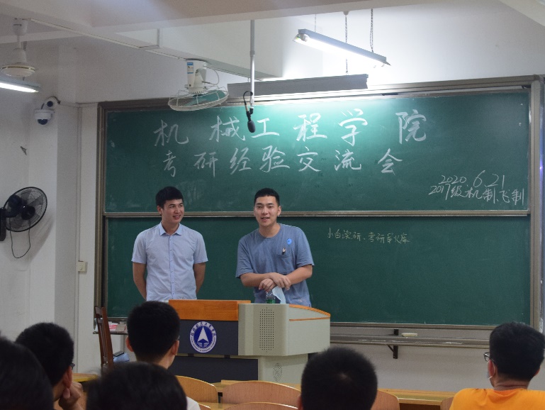 为进一步提高学院考研学生的考研意识和动力,正确制订考研目标,了解更多考研趋势和考研信息。6月21日晚,机械工程学院邀请2020届考研学生代表在飞天楼212举行2021届考研经验交流会。交流会由学院辅导员陈秋静老师主持。