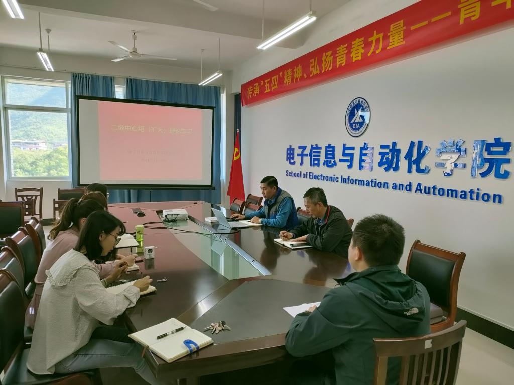 4月30日上午,电子信息与自动化学院党总支在巡天楼405会议室举行了学院二级理论中心组专题理论学习扩大会议,会议由党总支书记主持,学院总支委员以及学院基层党支部书记参加了此次学习讨论。