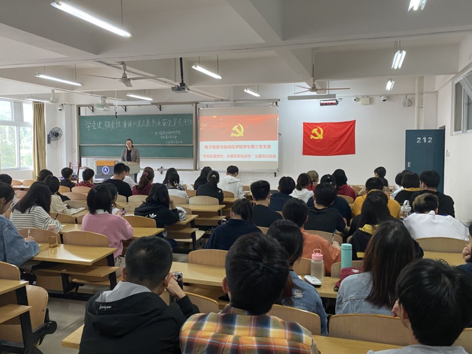 2021年是中国共产党成立100周年,也是十四五规划的开局之年,电子信息与自动化学院学生第三党支部于5月20日在飞天楼212教室召开“学党史、强党性,重读入党志愿书,永葆党员先进性”主题党日活动。支部全体党员、本期发展对象参加了活动。