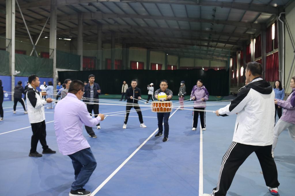 为进一步加强学工队伍建设,提高综合素质能力,展现学工干部的活力,11月3日上午,2021年学工系统教职工素质拓展团体培训在南校区网球场举行。校党委副书记刘迎春出席活动并讲话,学工系统百名学工干部组成六个代表队参加活动。