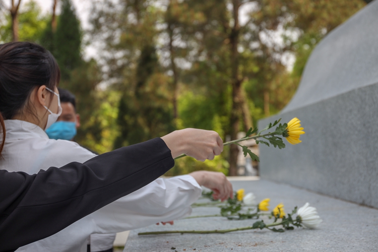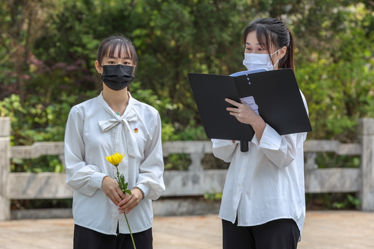 学生代表向英烈默哀并依次敬献鲜花。管理学院教师代表带领现场师生重温入党誓词,表达了继承先烈遗志,践行初心使命的坚定信念。