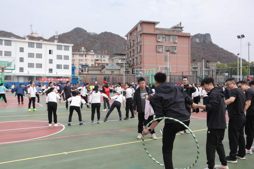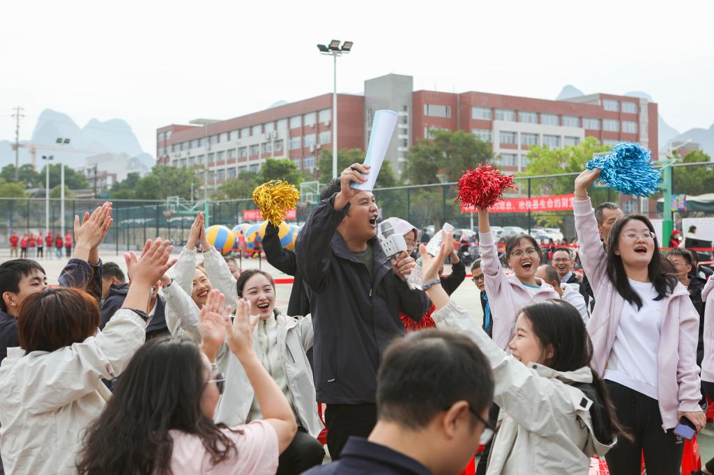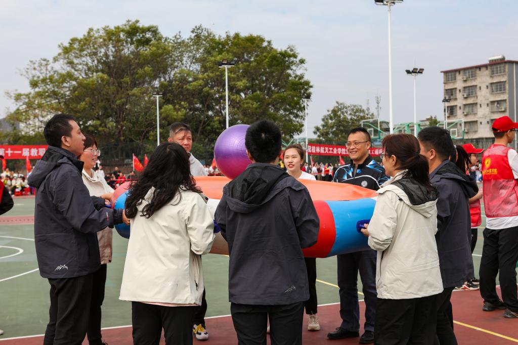 随着哨声吹响,现场热闹沸腾,加油助威声此起彼伏。教职工们在比赛中团结协作、配合闯关。观众席上,彩旗飘飘,呐喊声声,教职工运动员们奋力拼搏的精神带动了现场的情绪。大家同场竞技、欢乐无限,充分体现了“友谊第一,比赛第二”的体育精神。