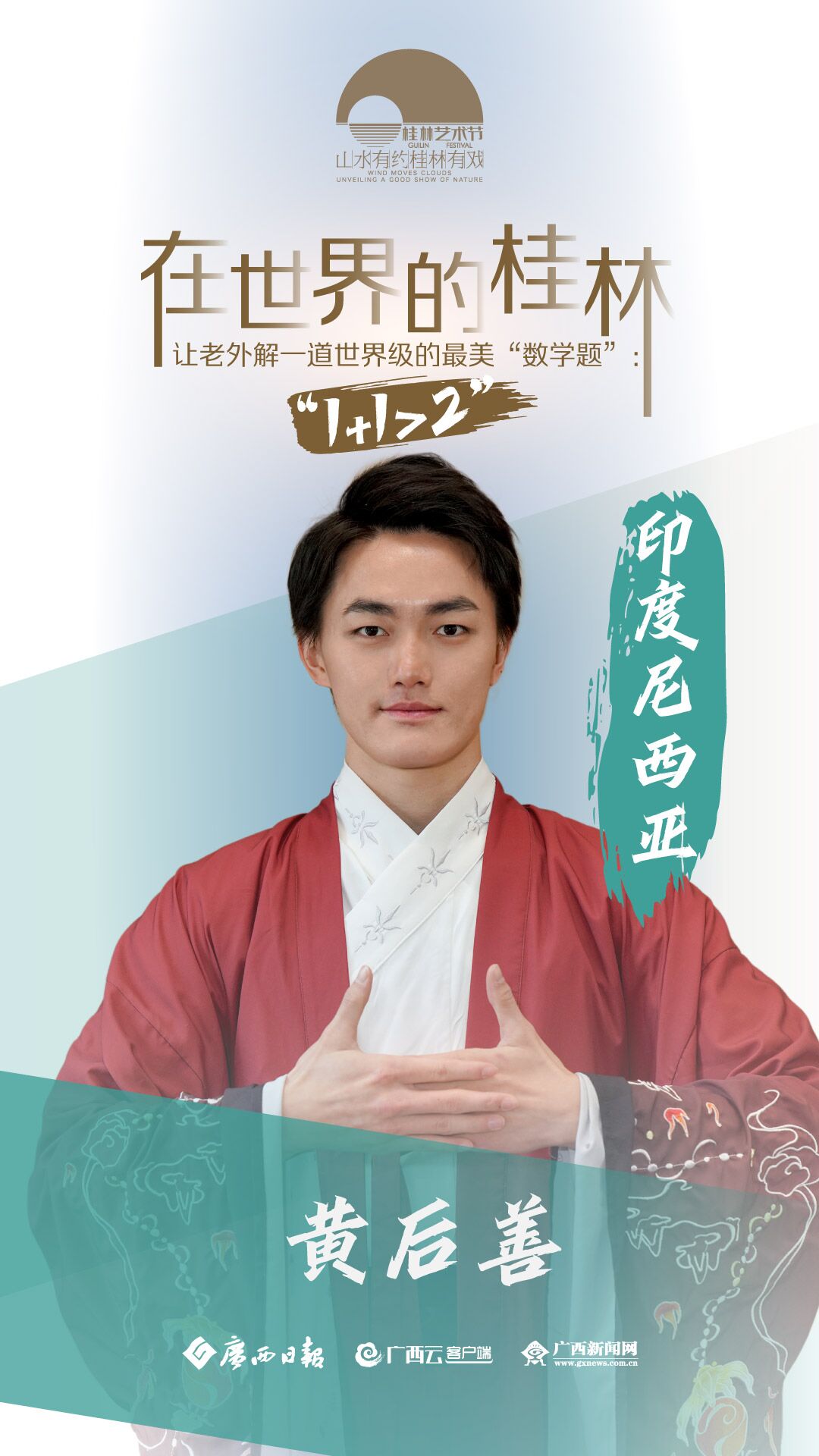 12月9日、10日,best365官网印度尼西亚籍留学生黄后善应邀参加2022年桂林艺术节——老外直播全城打卡活动。