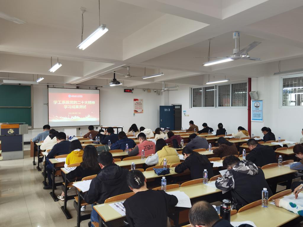 本次测试内容主要包括党的二十大精神、学生工作基础业务知识等,主要考察辅导员理论学习效果及掌握业务工作基本技能,根据测试结果评选先进个人和优秀组织单位,达到以赛促学、以学促用、以用促改的作用。