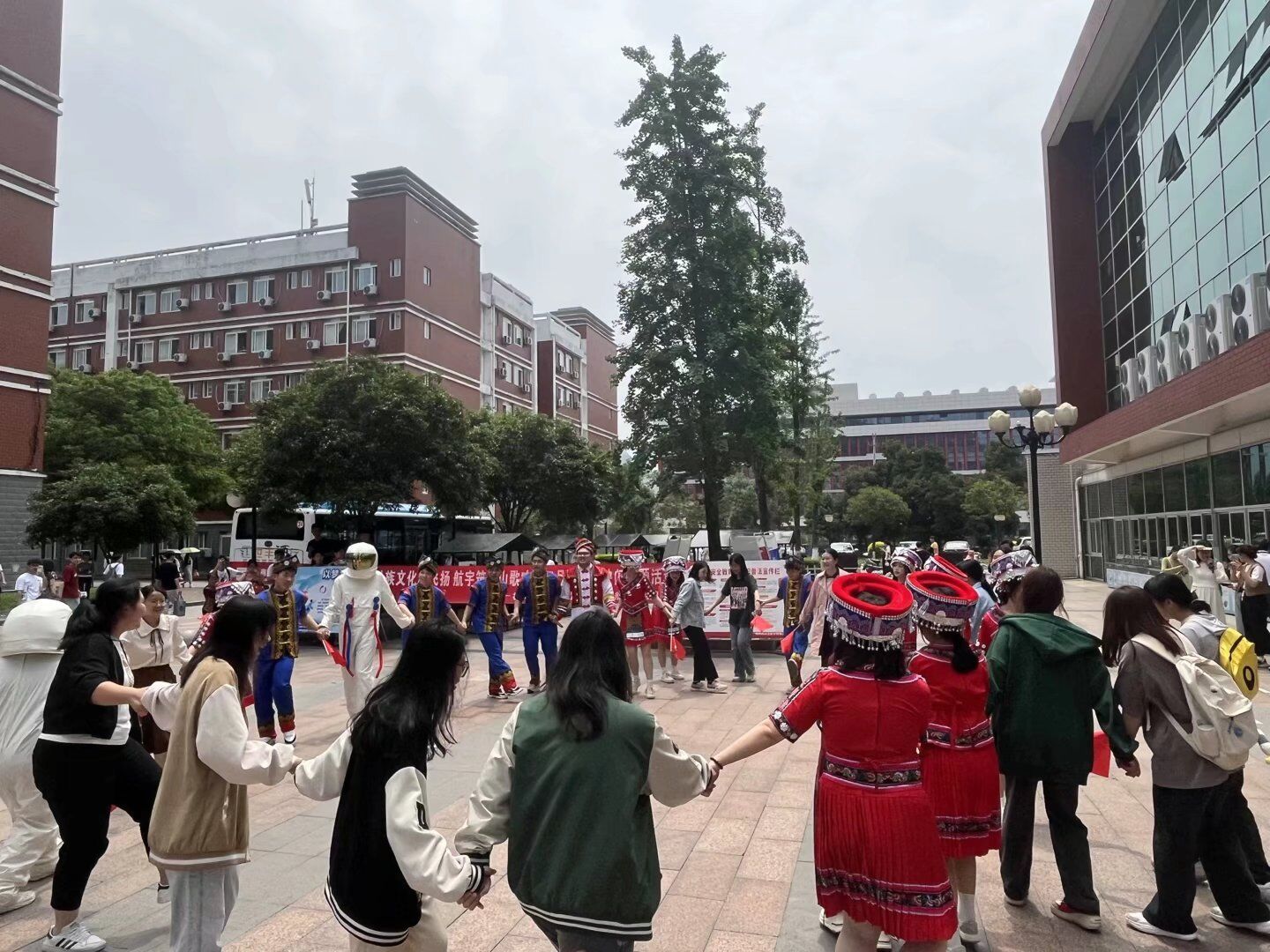 4月20日,为全面学习贯彻党的二十大精神,落实习近平总书记对广西“五个更大”重要要求,进一步铸牢中华民族共同体意识,感受丰富多彩的少数民族文化,庆祝广西“三月三”传统节日,航空宇航学院在南校区天宫楼门前开展了“壮族文化魂飞扬,航宇筑梦山歌响”三月三民歌快闪主题活动。