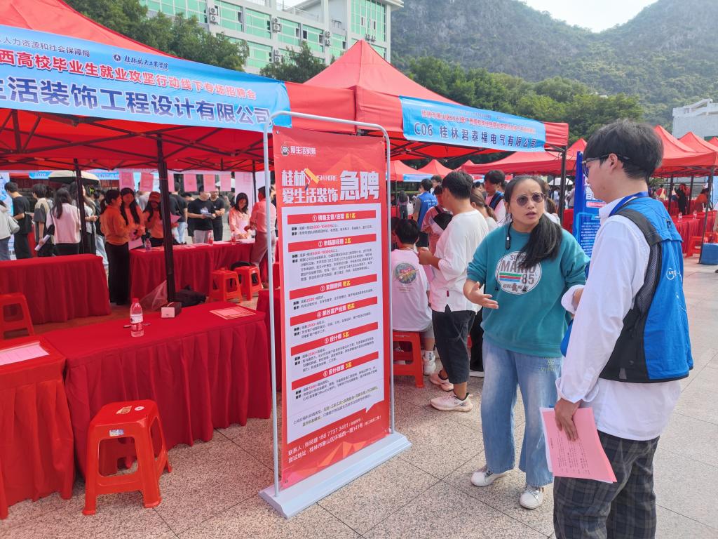 9月23日上午,best365手机版官方网站联合桂林市象山区人力资源和社会保障局在北校区青春广场举办“筑梦广西•桂在有你”2023年广西高校毕业生就业攻坚行动线下专场招聘会。本次招聘会由电子信息与自动化学院和理学院共同承办,桂林市象山区人力资源和社会保障局相关负责人、学校学工部(处)、各学院负责人、2024届毕业班辅导员到现场为学生提供了就业指导服务。