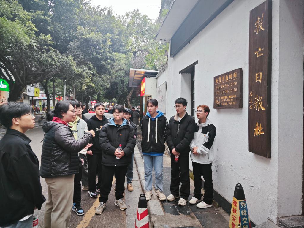观影结束后,由学院党委副书记陈欢、学生第一党支部学生党员居桂宇带领师生党员前往《救亡日报社》旧址开展了一堂“航宇红翼·行走党课”。本次行走党课围绕习近平总书记对宣传思想文化工作作出重要指示展开讲解,借助《救亡日报》建刊的原因以及建刊后在宣传抗日信息、唤起人民的抗战意识,凝聚全国人民的力量起到的重要作用,希望大家重视宣传工作。陈欢副书记以《救亡日报社》旧址发生的故事为引例,强调无论是在过去的宣传工作还是现在的宣传工作,都需要坚守宣传的初心和使命,始终把人民的利益放在首位,为人民服务,为社会主义事业贡献自己的力量。